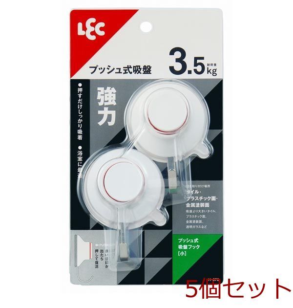 プッシュ式吸盤フック(小) 生産地 中国 サイズ 本体サイズ(約):W50xD35xH75mm 取り付け方法:プッシュ式吸盤粘着テープ 荷重(約):3.5kg 包装形態:ブリスター台紙(1台紙2個付) 素材 本体:ABS樹脂 フック:ステンレス鋼板 吸盤:塩化ビニル樹脂 ブランド レック |
