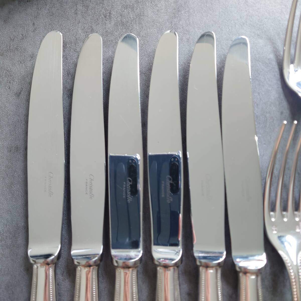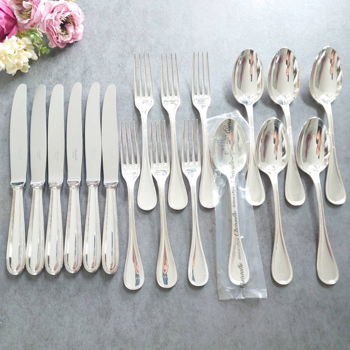 開封済みのものはカトラリー同士の接触傷や使用に伴う小傷、お手入れによるスレなど多少ありますが、状態の良いお品物と個人的には考えております。