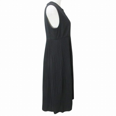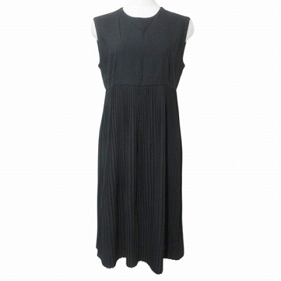 カルバンクライン CALVIN KLEIN collction プリーツ ワンピース ミモレ丈 ノースリーブ ウール 黒 ブラック 4 日本サイズM相当 X レディース