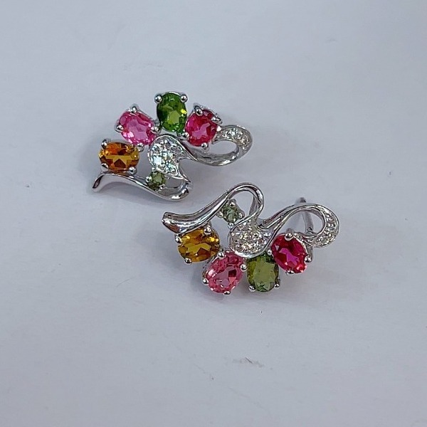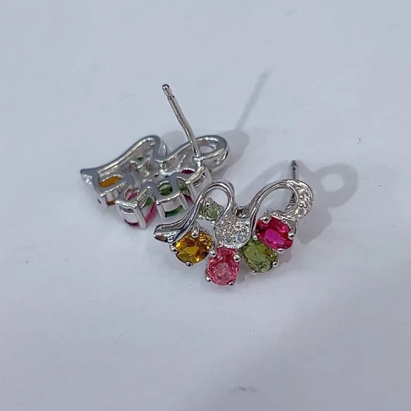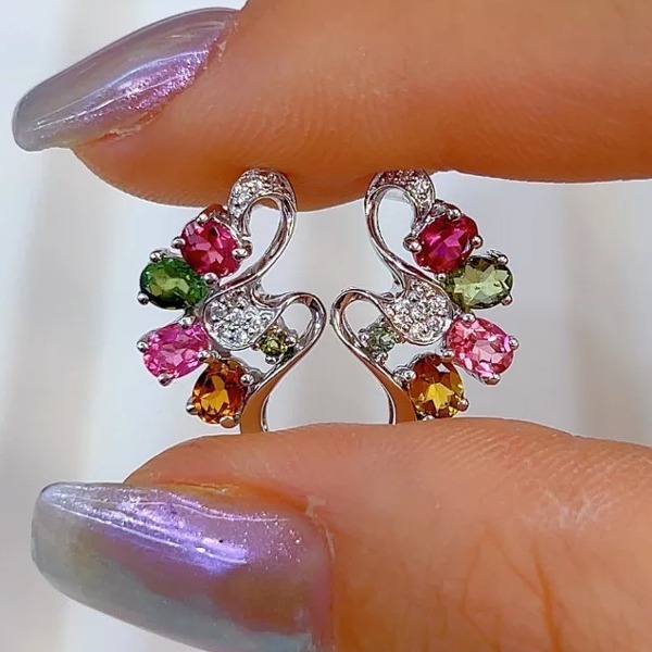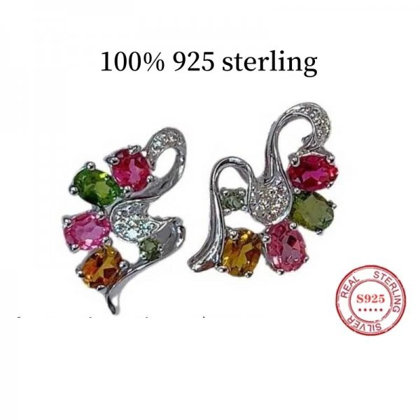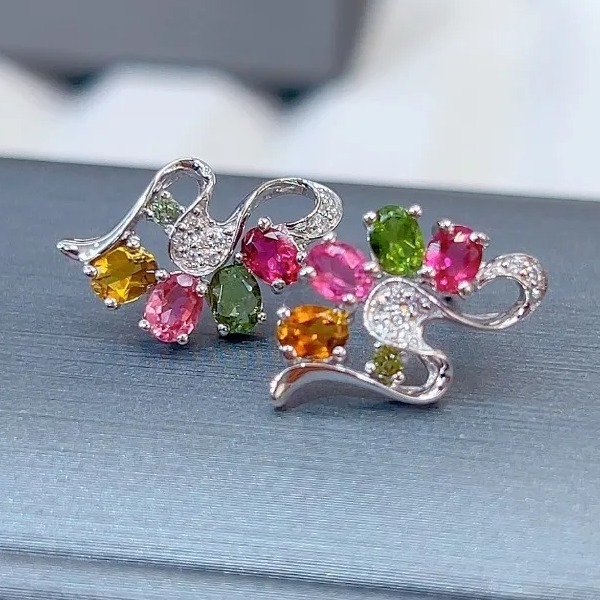 女性用925シルバー天然トルマリンピアス、高級ジュエリー