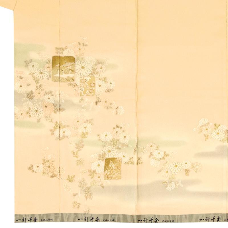 | ★商品説明 | ■「尾我佐染繍」最高級の手刺繍美術で制作した格調と気品のある特撰訪問着です。 ■京友禅工芸染の雲霞ボカシに祝いの菊と色紙梅、桜、波鶴文を細かな手刺繍で描いています。 ■最高の技法に上質な生地、デザインの高さなどすべてに手抜きの無い最高の物作りです。 |