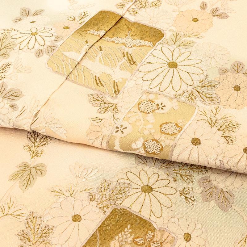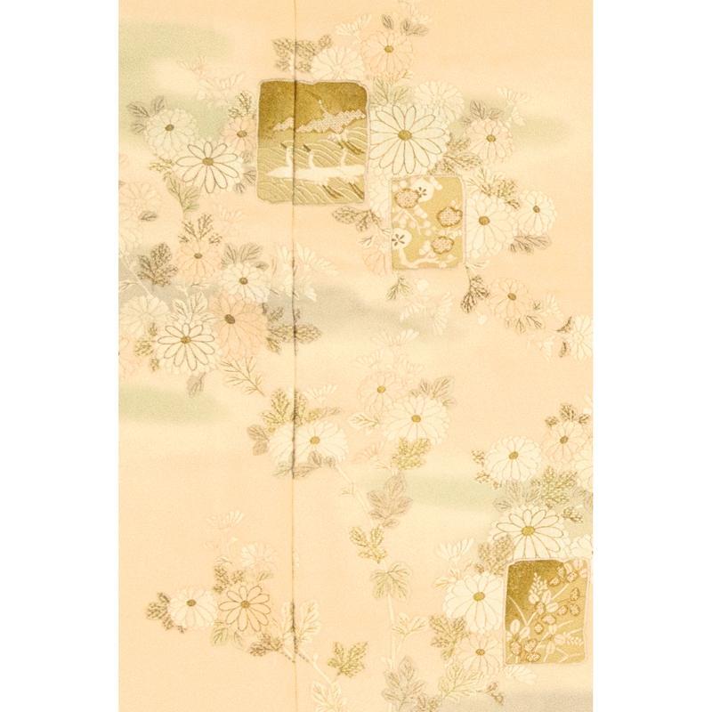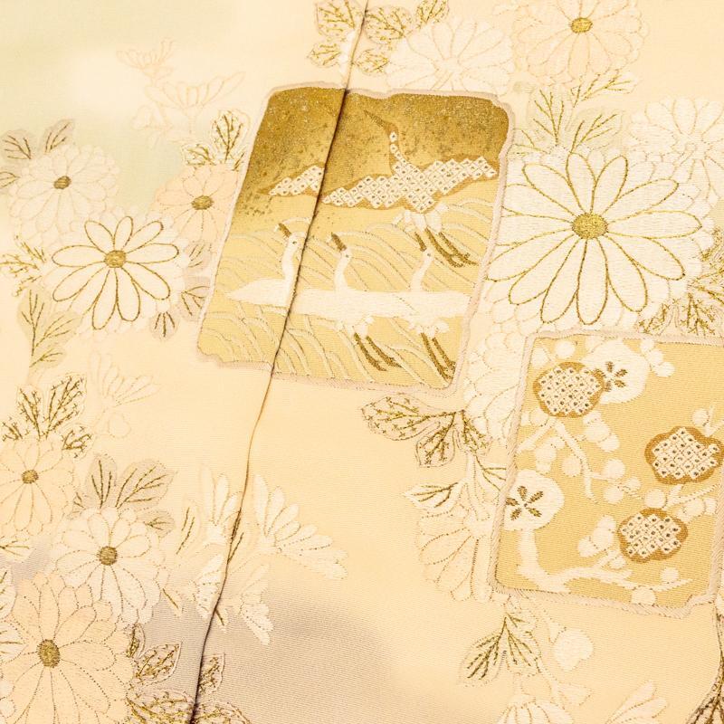 | ※記念感謝祭【仕立無料】最高級手刺繍美術「尾我佐染繍」謹製☆特撰工芸雲霞地に菊色紙梅、桜、波鶴訪問着 |