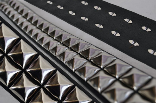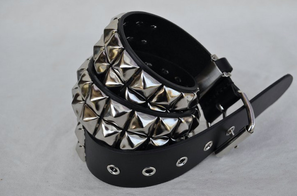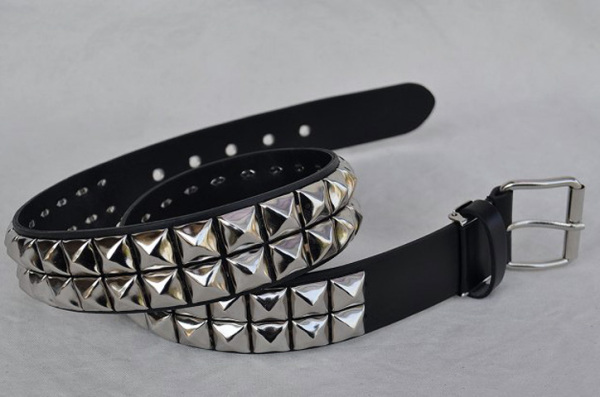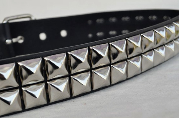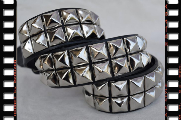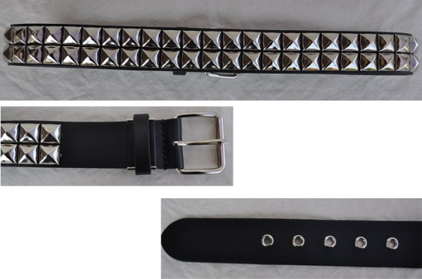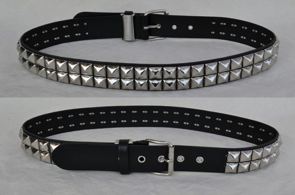 ▼ピラミッドスタッズ2連ベルトブラックXL本牛革新品86cm~91cm