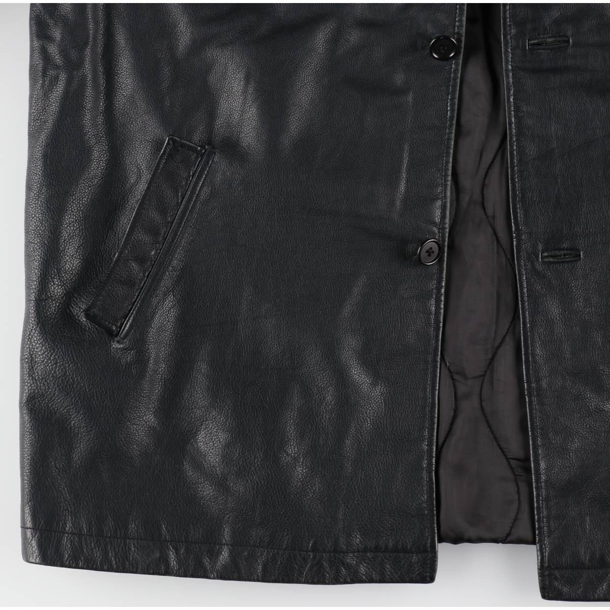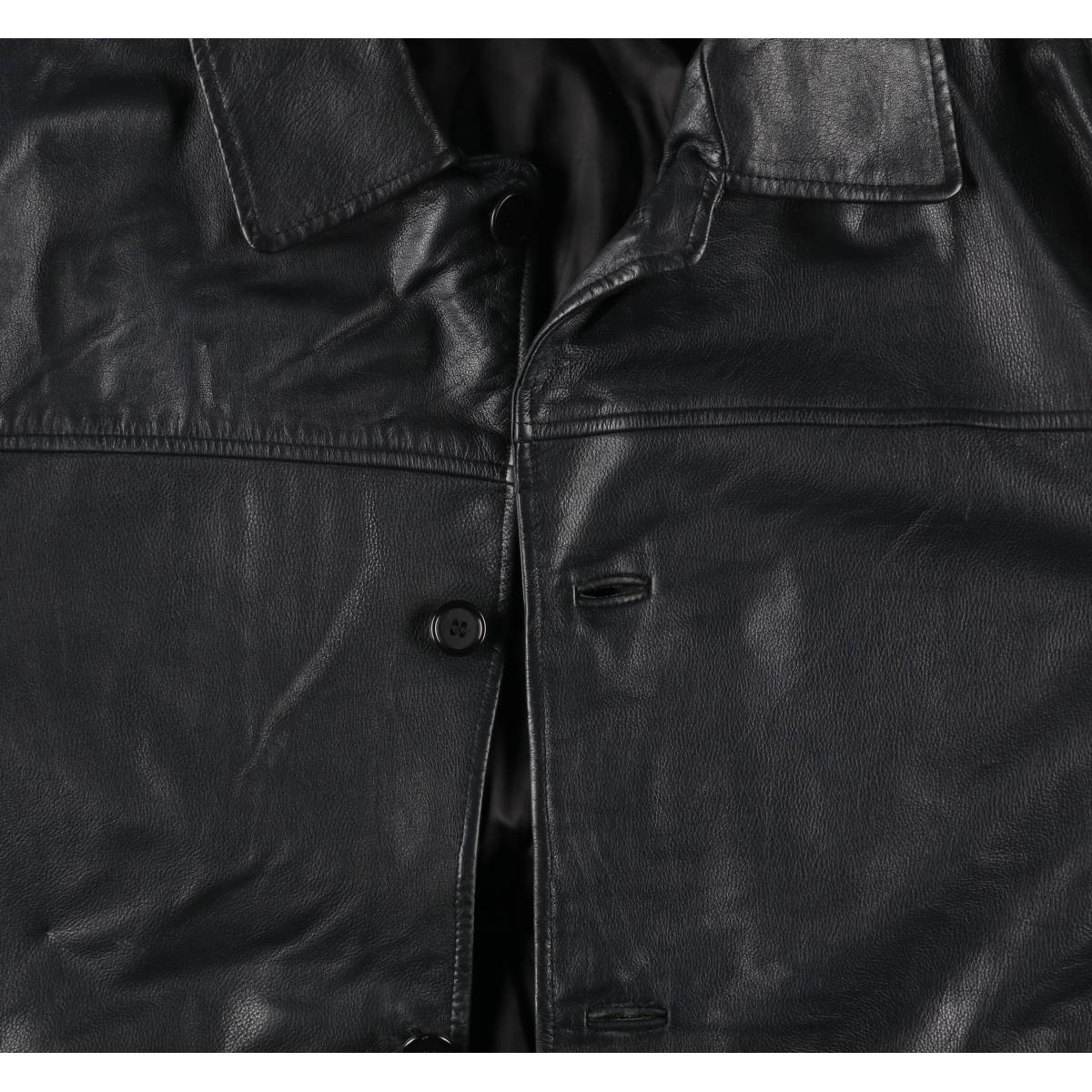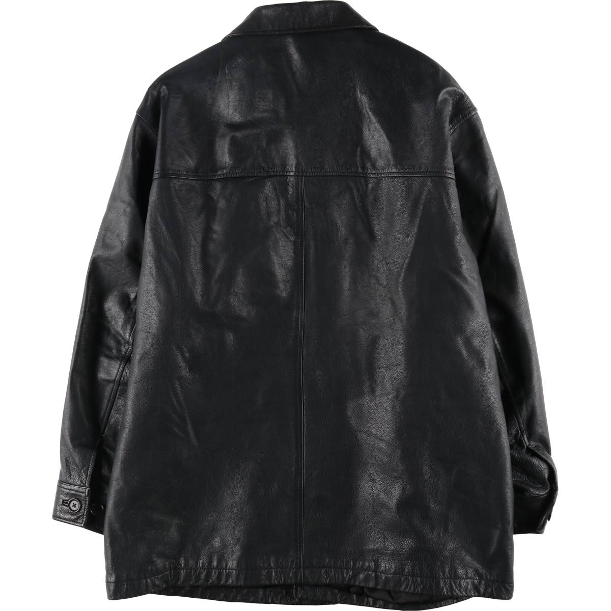 | 表記サイズ: XL 着丈: 83.5cm 身幅: 66cm 肩幅: 55.5cm 袖丈: 64cm ![]() | ![]() ランク:C USEDレザーアイテムですので使用感、汚れ、擦れなどございますがレザーアイテムのリアルな表情として捉えていただきご注文御願いします。 【状態追記】 ●内側全体に綿出ています ●前、前立て全体(下も)に汚れ 両袖ぐり・両腕・右袖先・両ポケット口・裾に擦れ 右ポケット内側に穴 ●後、両袖ぐり・両腕全体・裾に擦れ 右袖先(ボタン)にリペア ●内側、右腕内側・背中内側に糸引き 右袖先内側に糸ほつれ 前立て内側(胸部・腹部)・裾内側に擦れ 前立て内側(第2ボタン)に欠損 前立て内側(第4ボタン)に割れ |