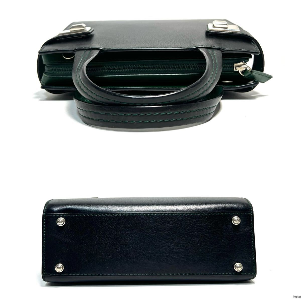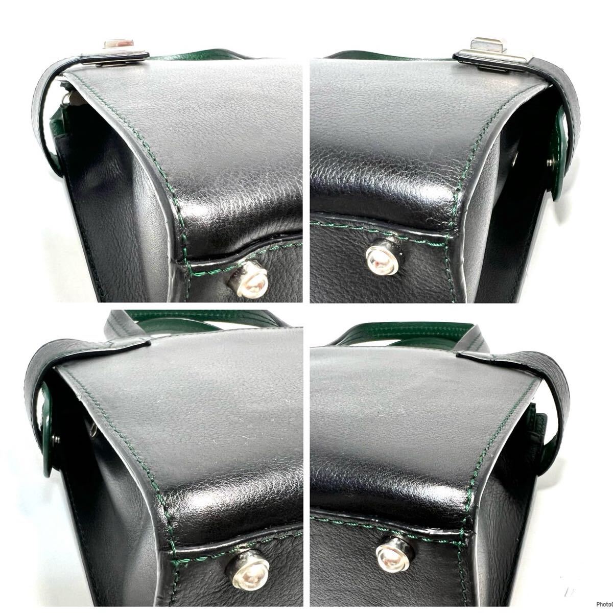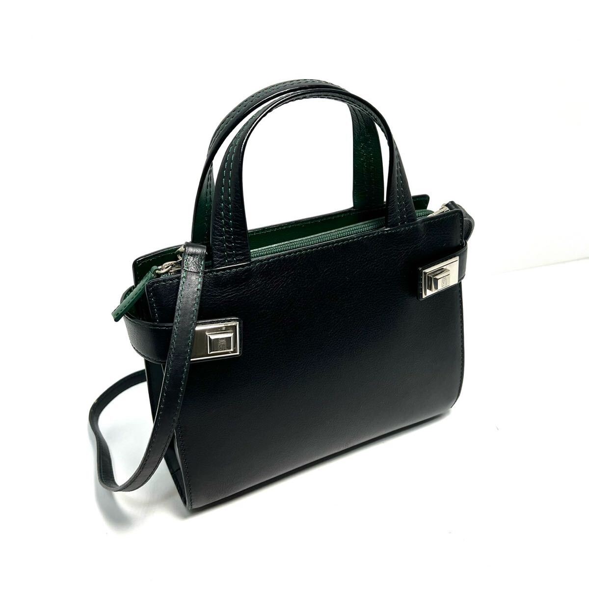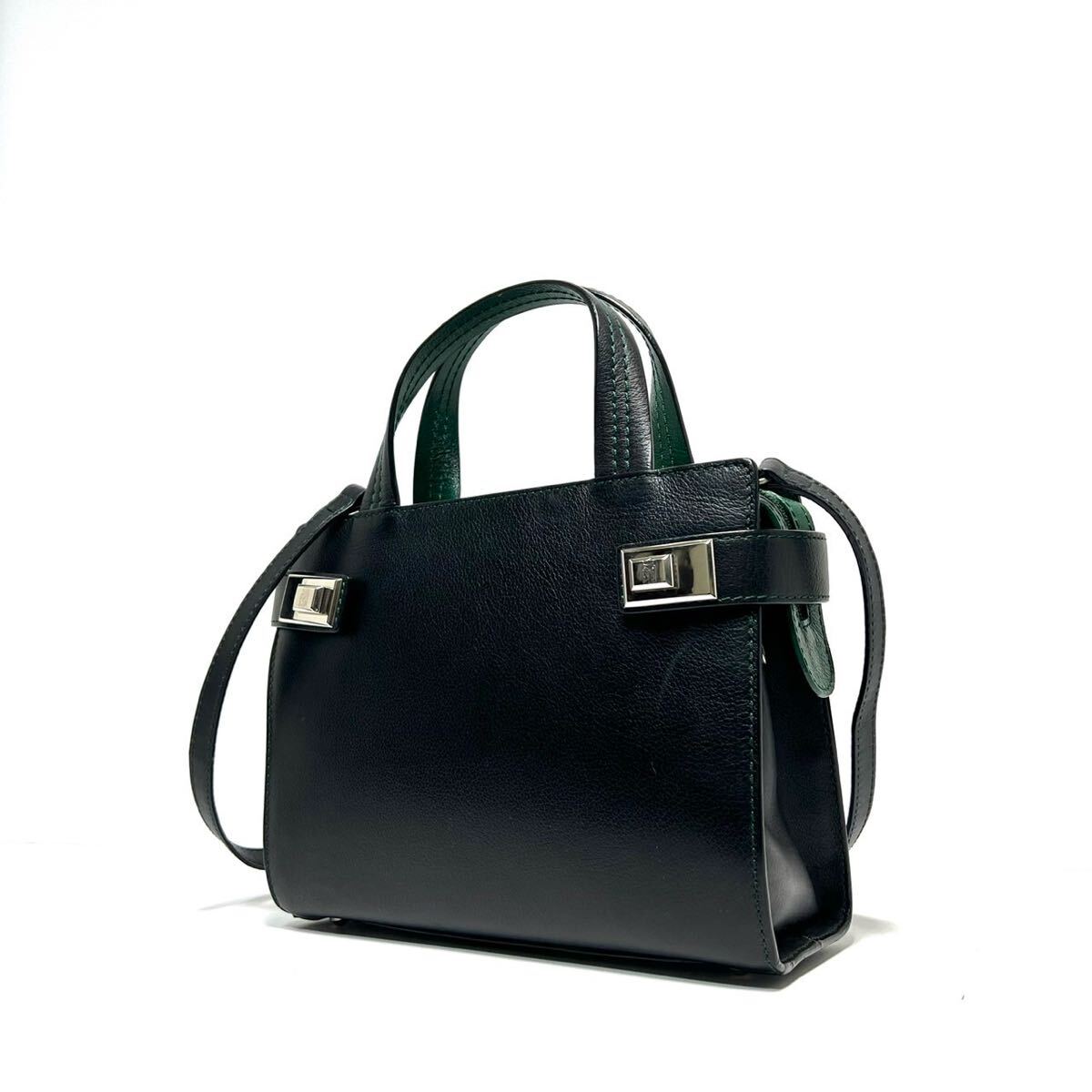 【美品】MORABITO モラビト italy製/カーフレザー 本革/シルバー金具/バイカラー/2way ハンドバッグ ショルダーバッグ