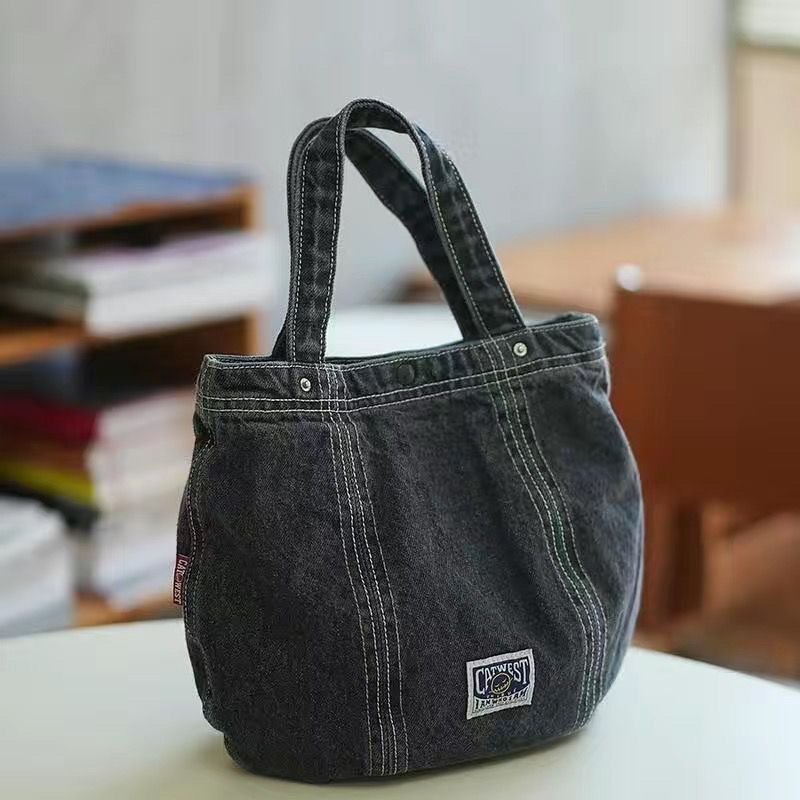 大人気 新品高品質 キャンバスハンドバッグ デニムバッグ レディース 小物収納 厚手 帆布 収納抜群 お出掛け 通勤通学 ブラックお色選択可