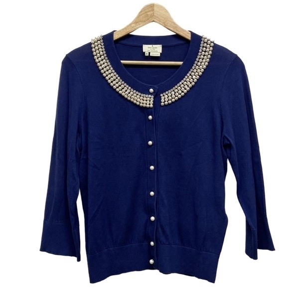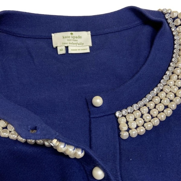 ケイトスペード Kate spade カーディガン サイズM - ネイビー レディース 長袖/パール/ラインストーン トップス