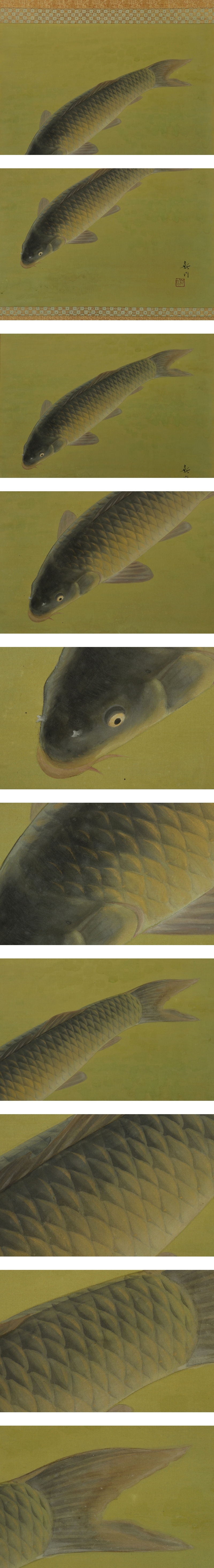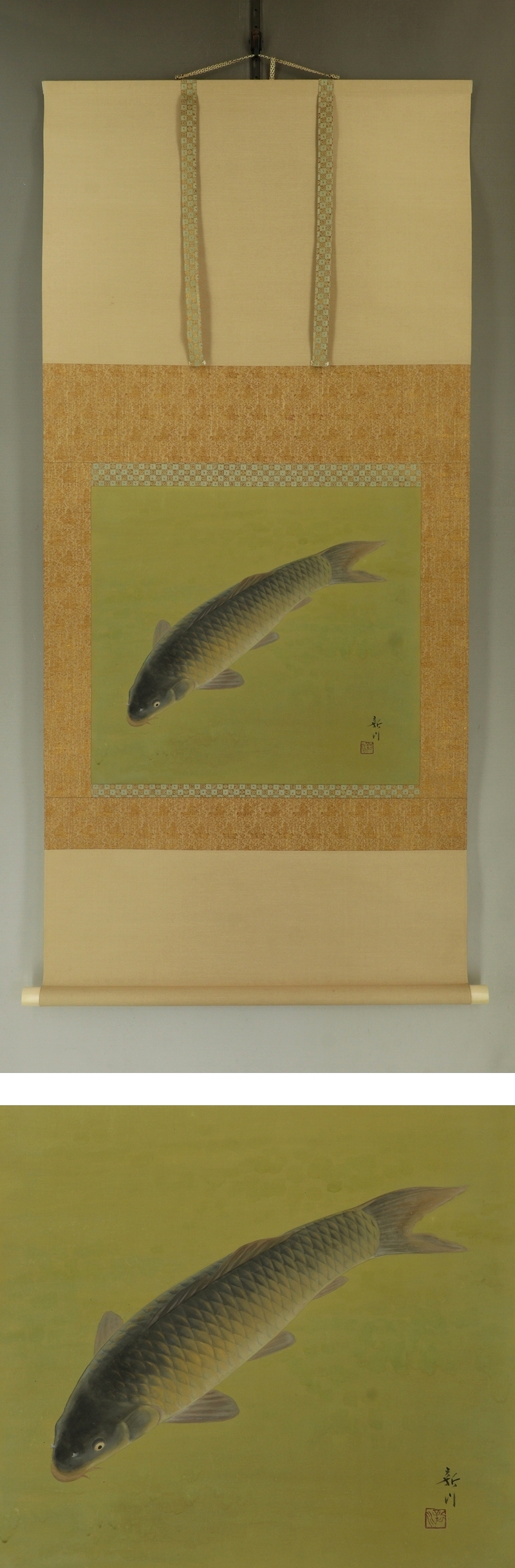| №2503030【模写】西野新川【遊鯉】◆絹本◆共箱◆二重箱◆掛軸 | |