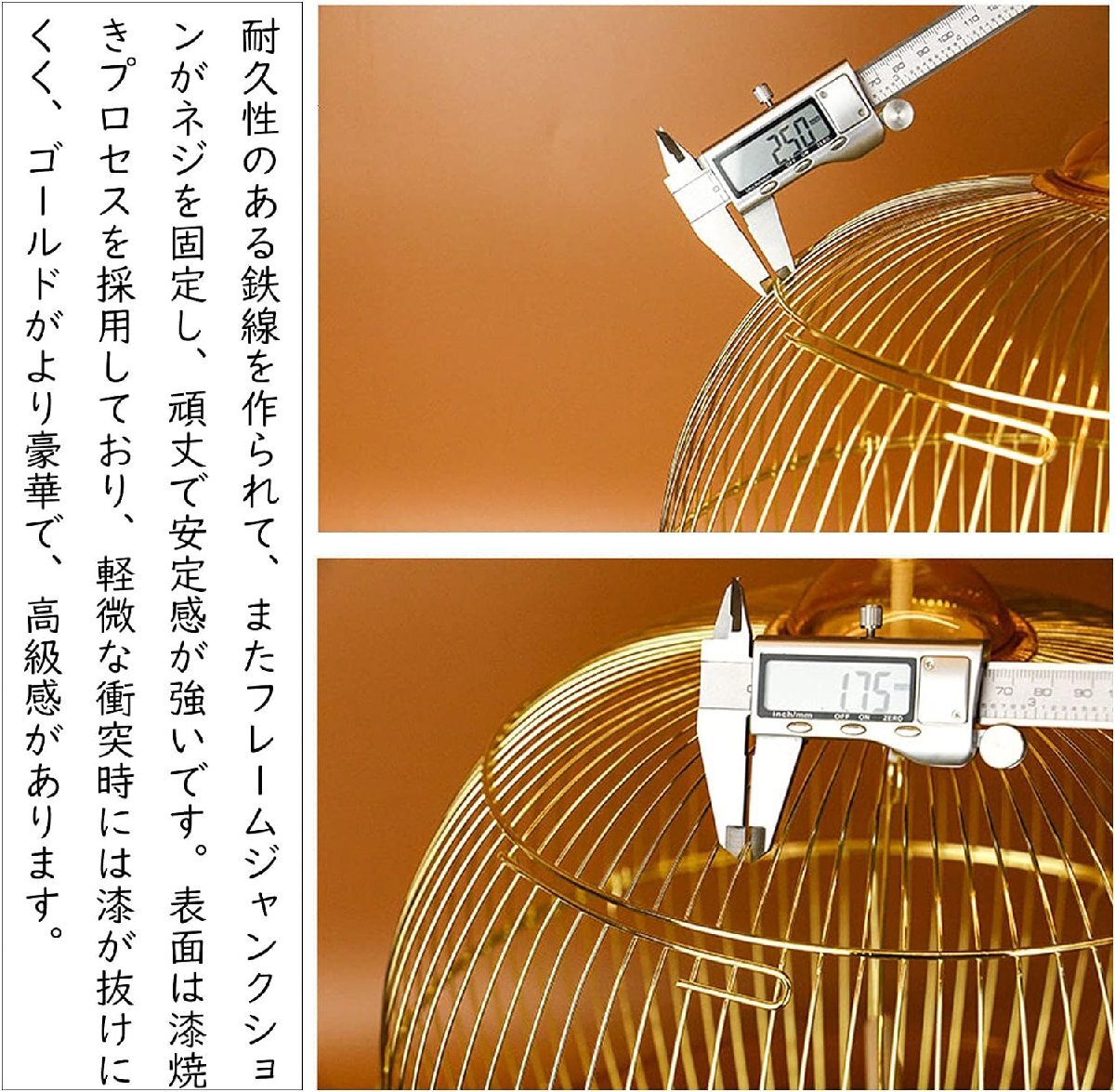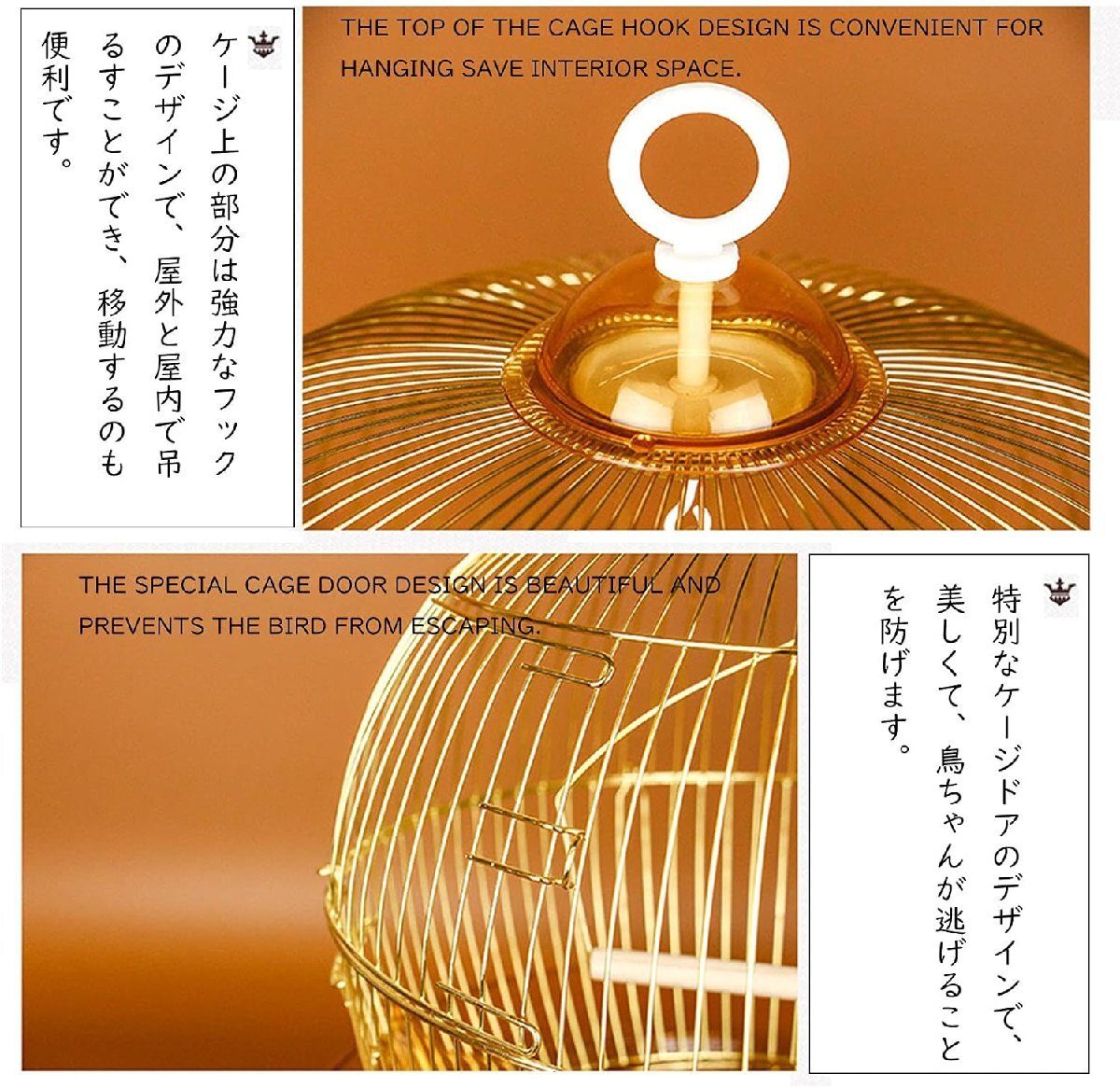 【高品質の素材】Xpossible鳥かごは鉄線で作られています。通気性も良く、空間が広くて、楽しい鳥ちゃんがゆったりとくつろぐ様子などもよく観察できます。表面は漆焼きプロセスを採用しており、軽微な衝突時には漆が抜けにくく、ゴールドがより豪華で、高級感があります
