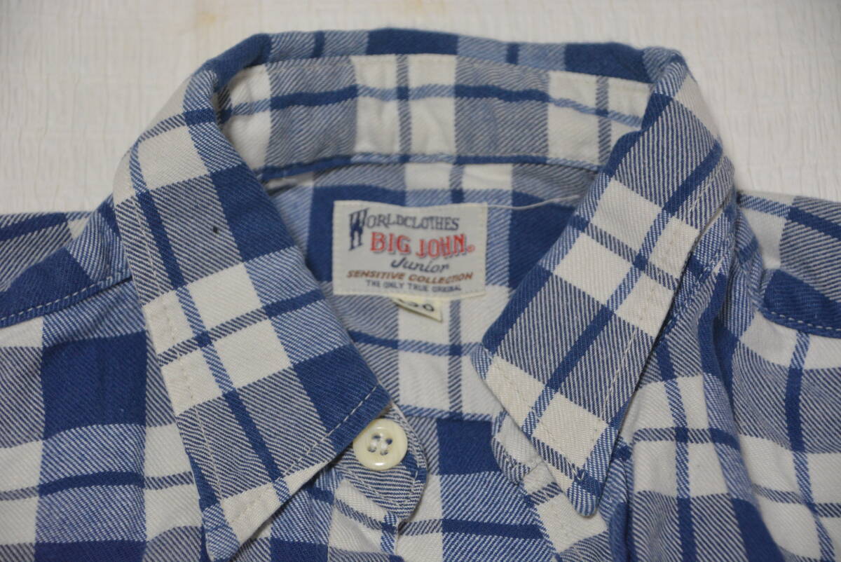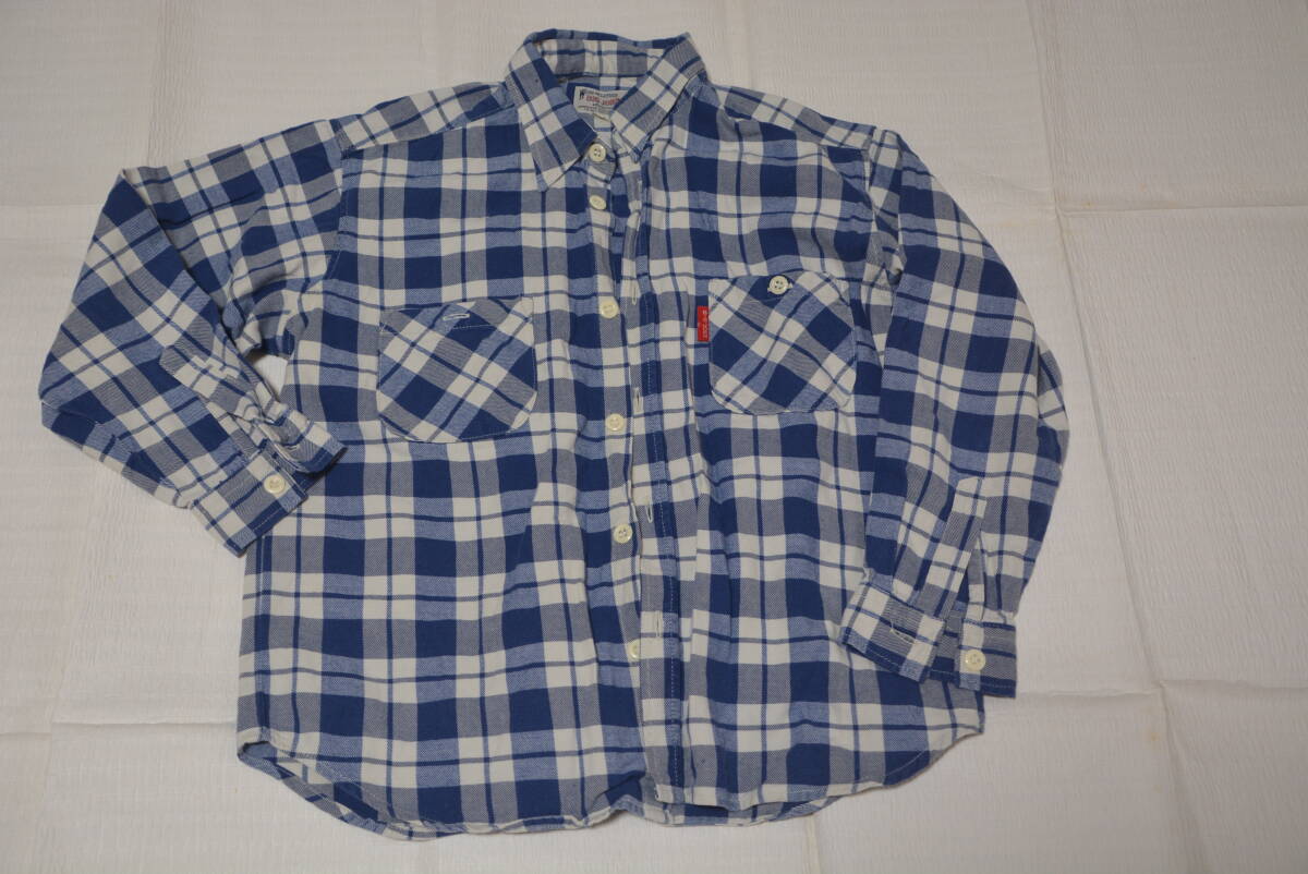 サイズ130 男児向き長袖シャツ 青系チェック柄 綿100% 日本製