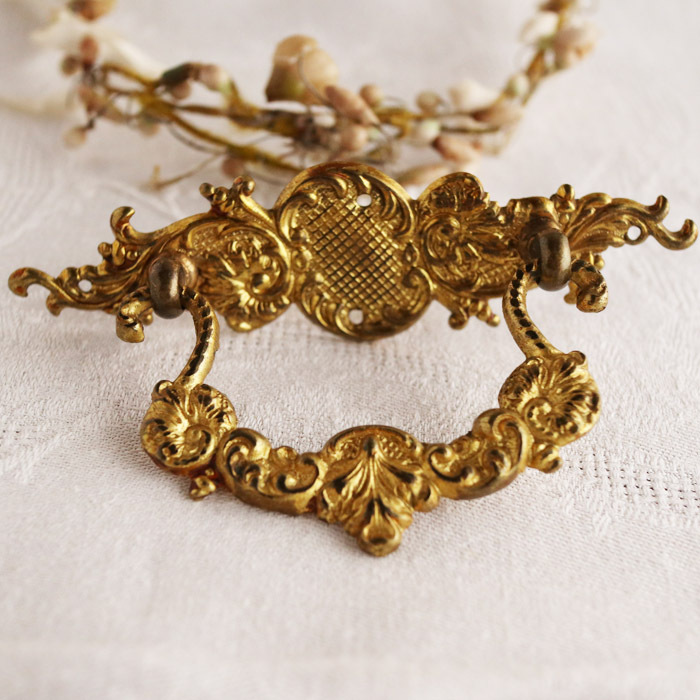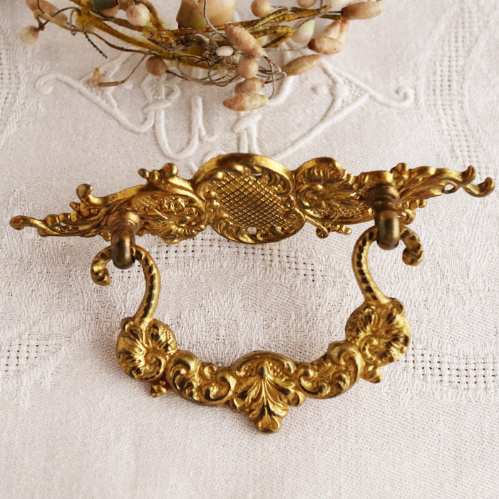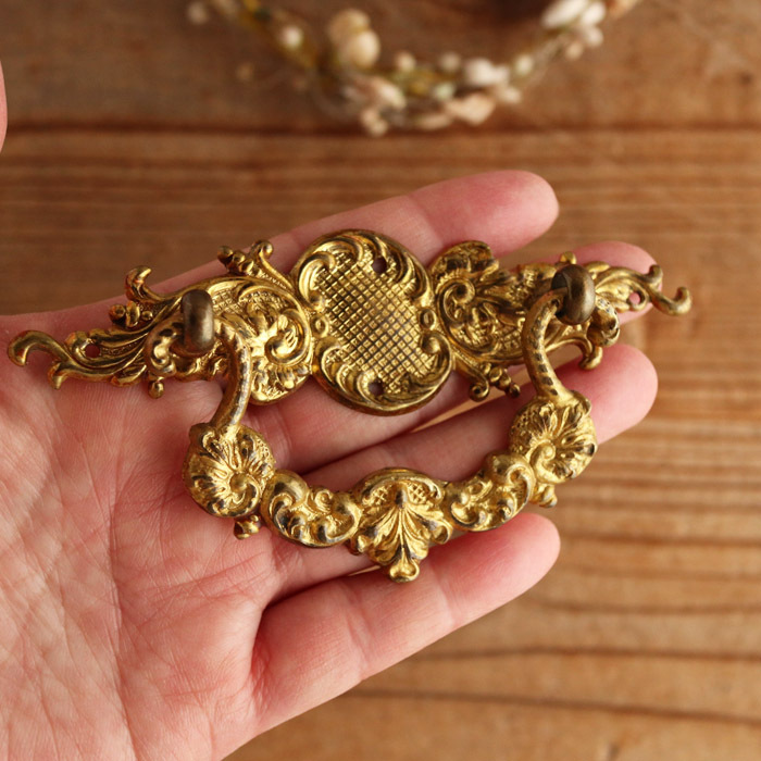 【535】フランス アンティーク 1900~1920年代頃 ドロワー ハンドル 引き出し 取っ手 金具 ロココ調 持手 引手 家具 パーツ リメイク
