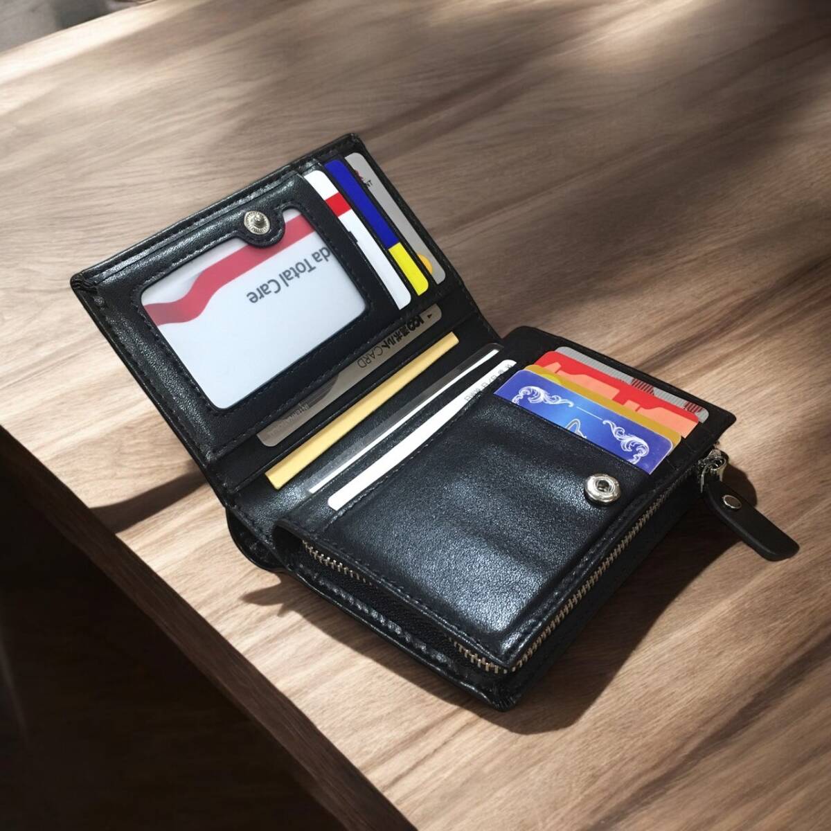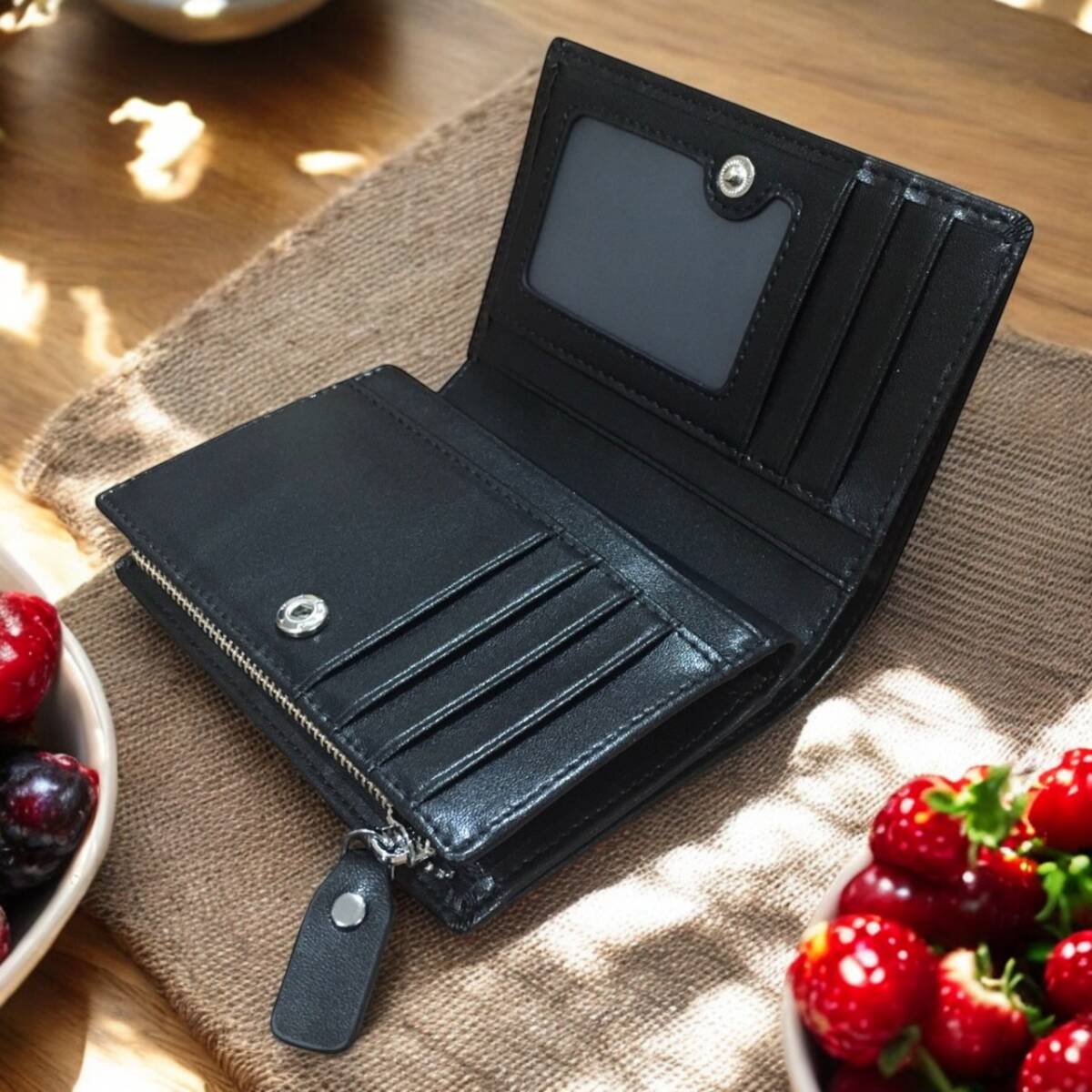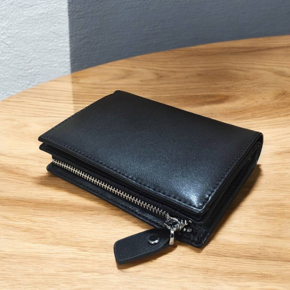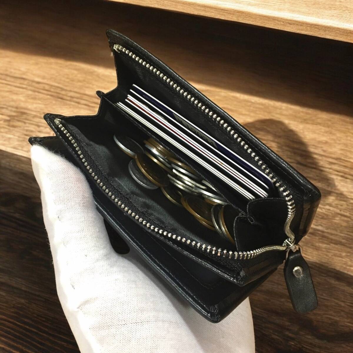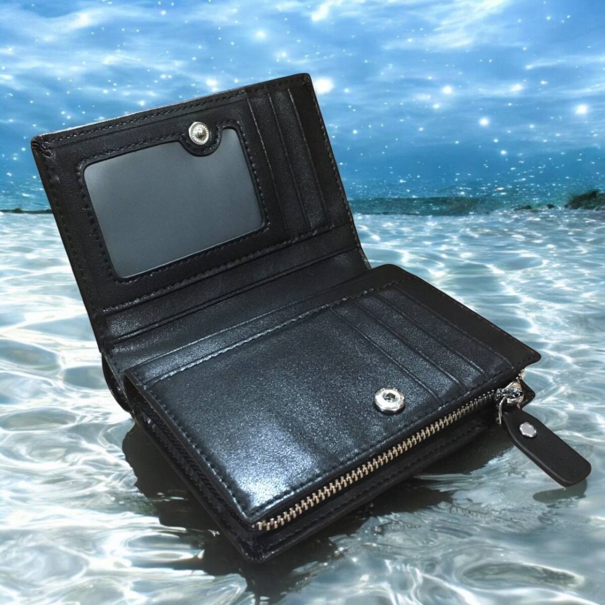 艶のある二つ折り財布 黒 ブラック メンズ レディース 小銭入れ カードケース