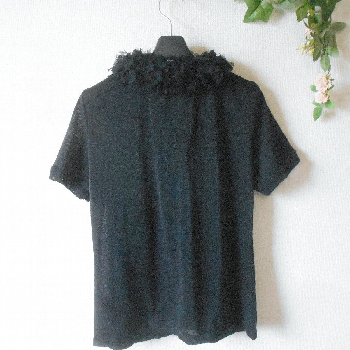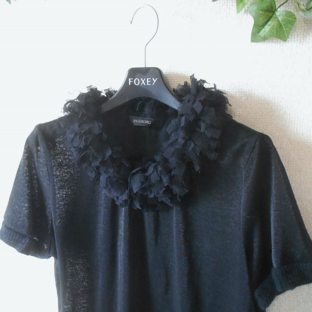 【ポイント】インゲボルグの半袖セーターになります。お色は黒色で、麻90%の春夏を中心に着ていただけるお品です。(袖口はウールが使用されています)