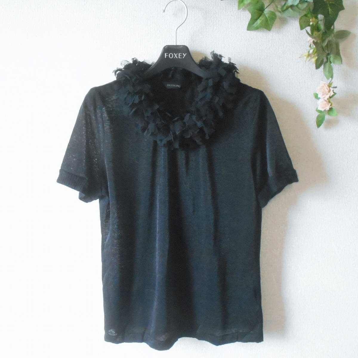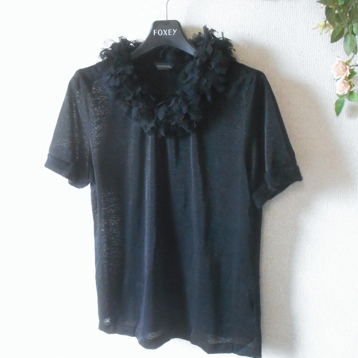 インゲボルグ INGEBORG 薄手 セーター ニットソー 麻 90% 春 夏 レディース 3 襟ぐり チュール 黒 日本製