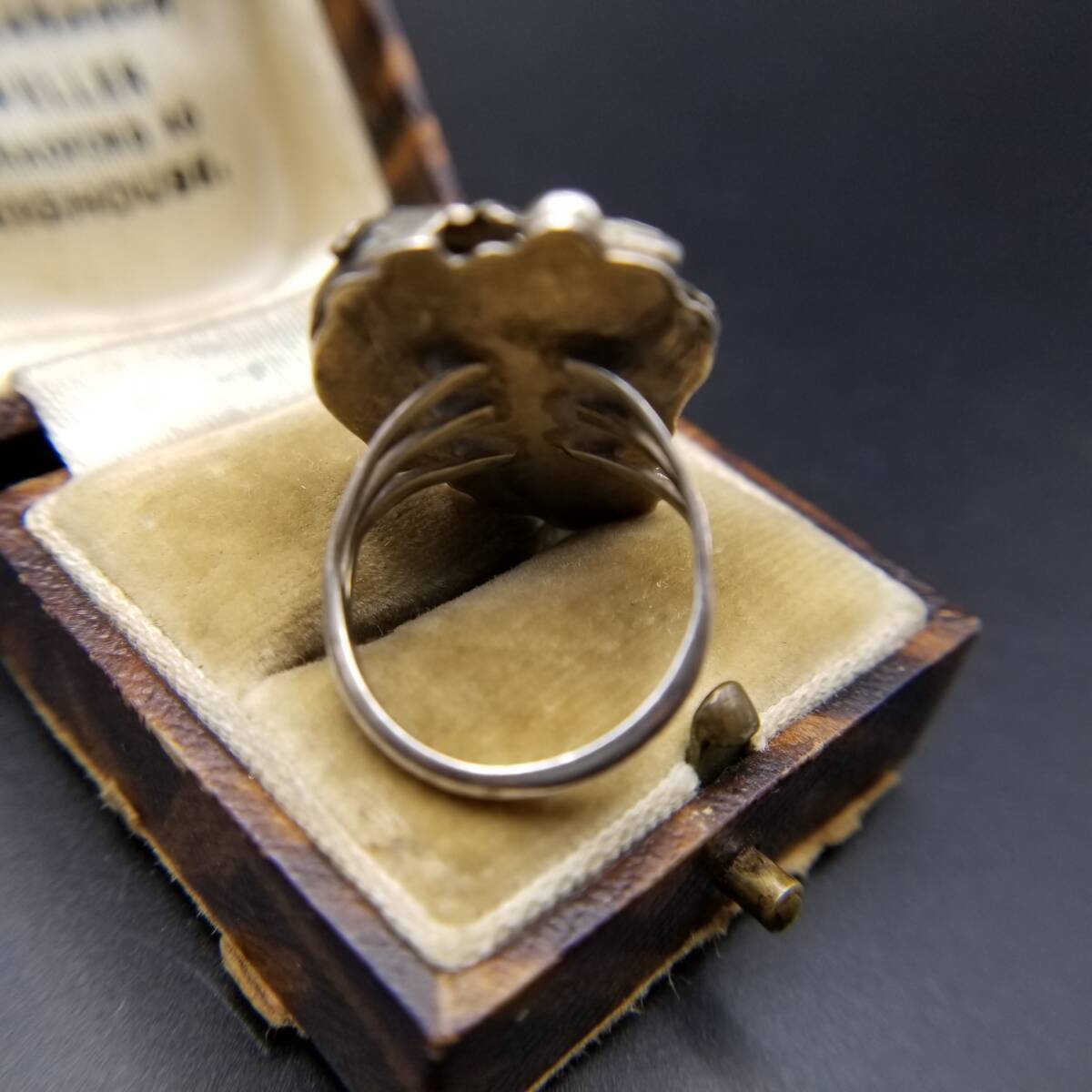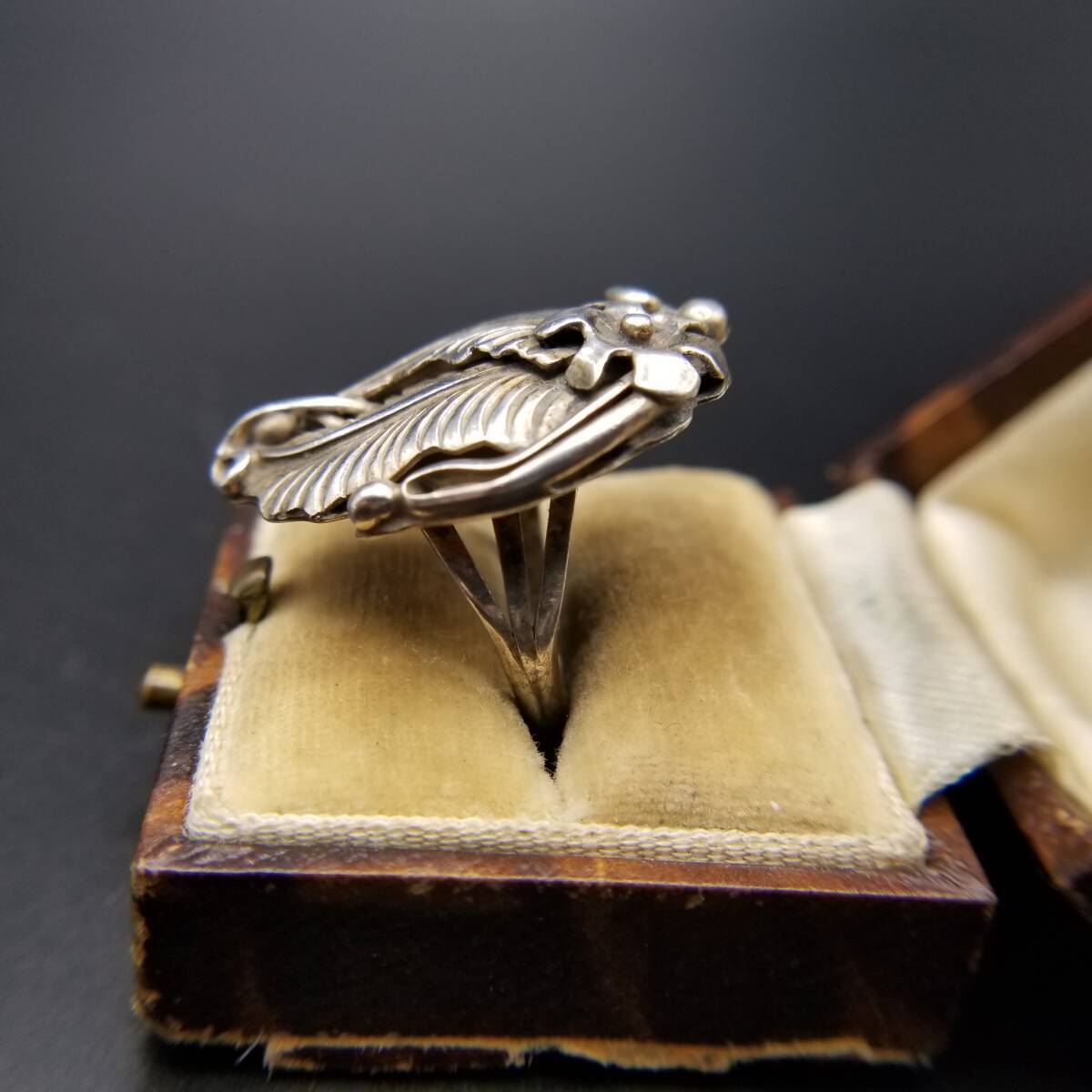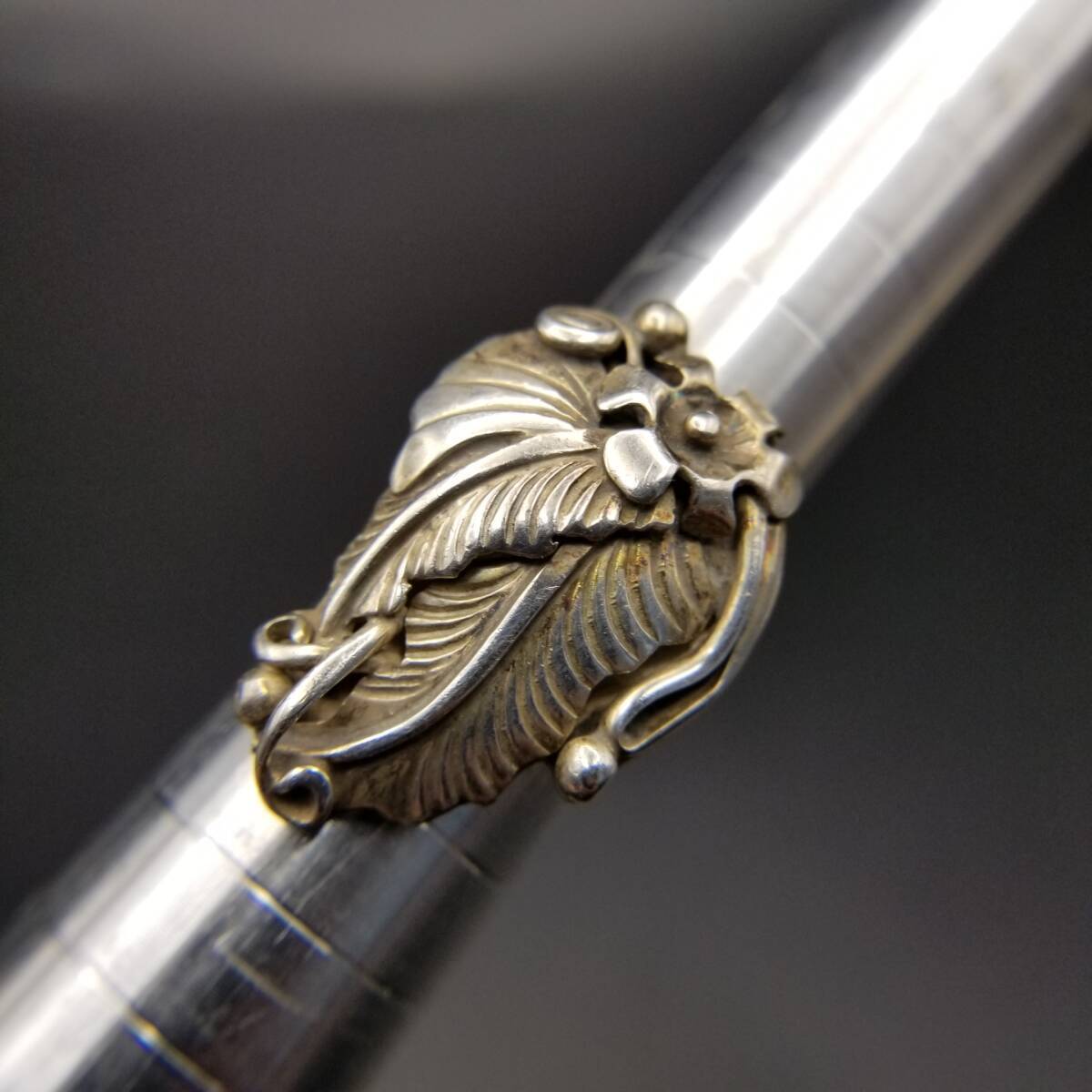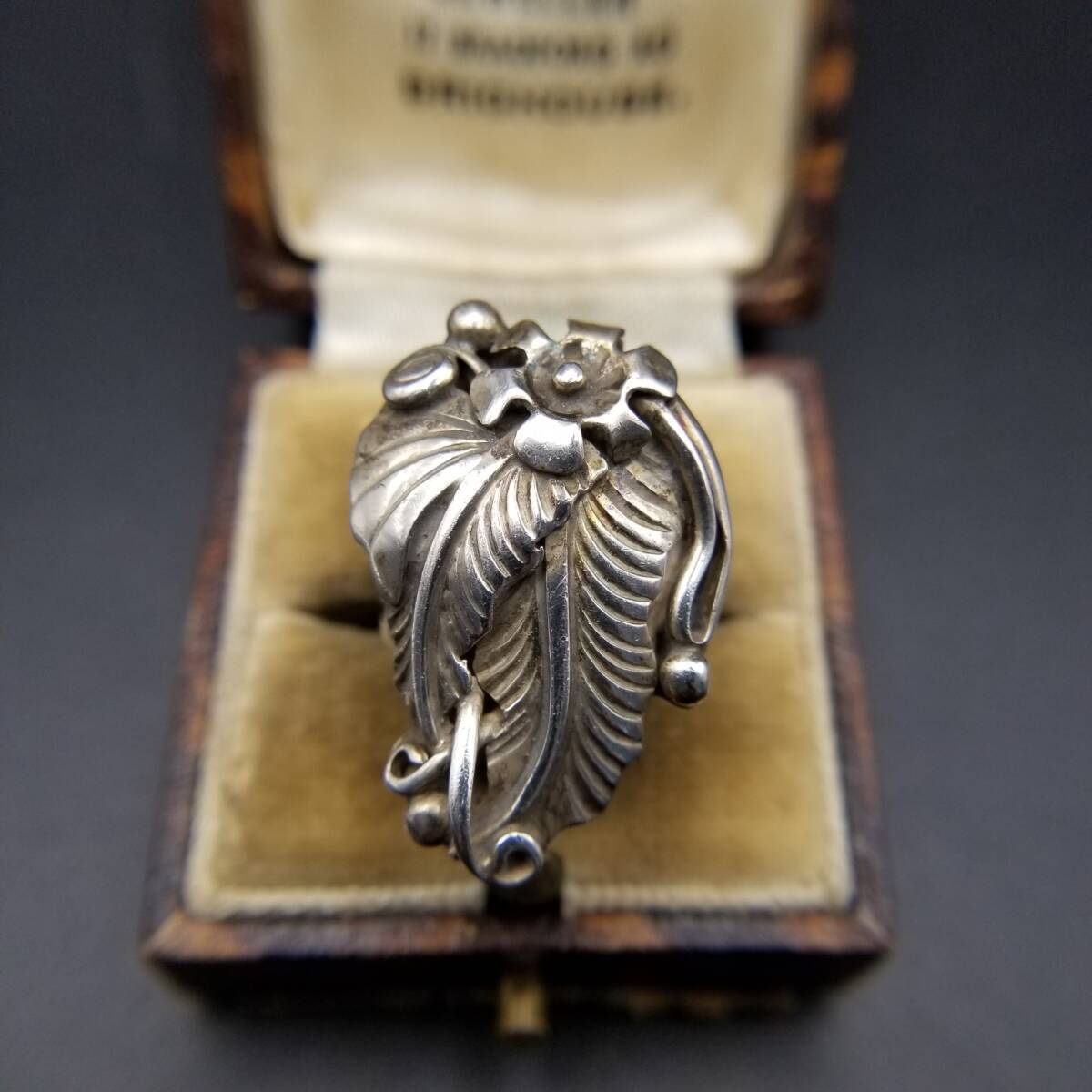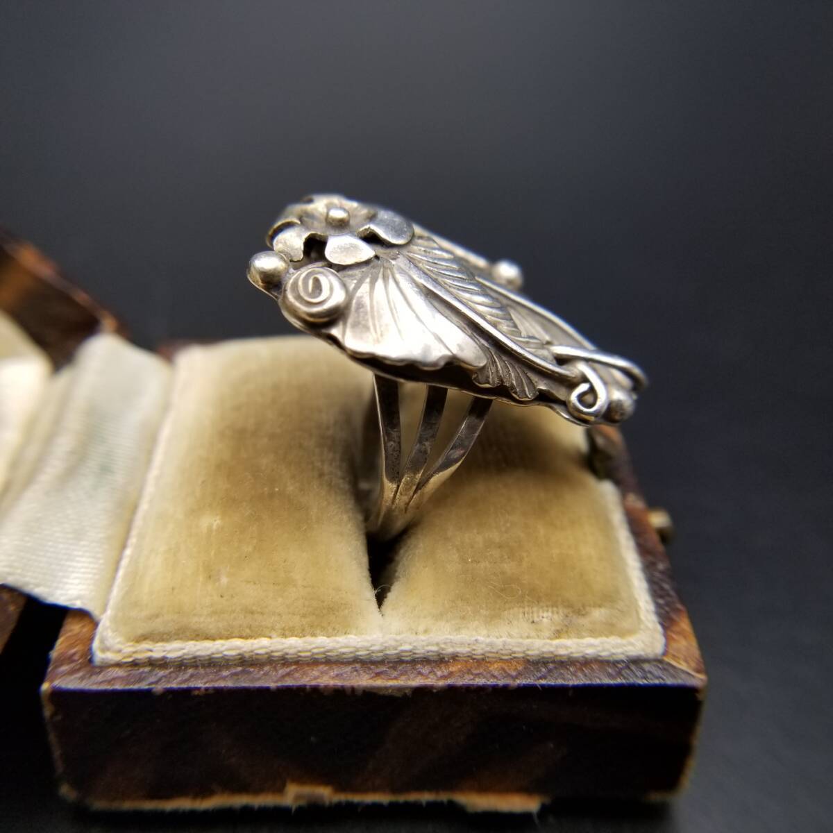 大きな葉の植物 お花 925 シルバー ヴィンテージ フローラル リング 銀 指輪 レトロ 大ぶり 存在感 ステートメントジュエリー Y22-L
