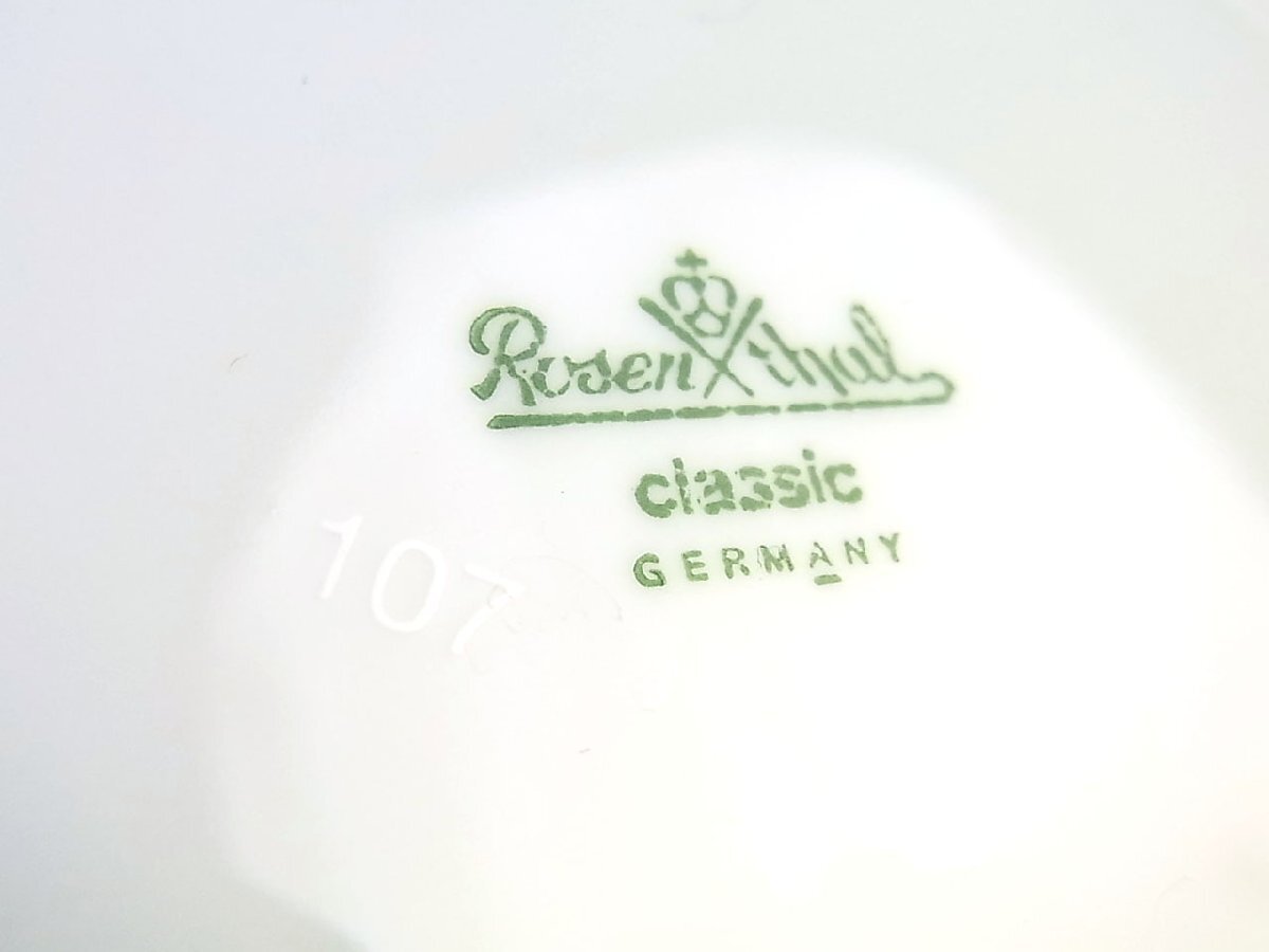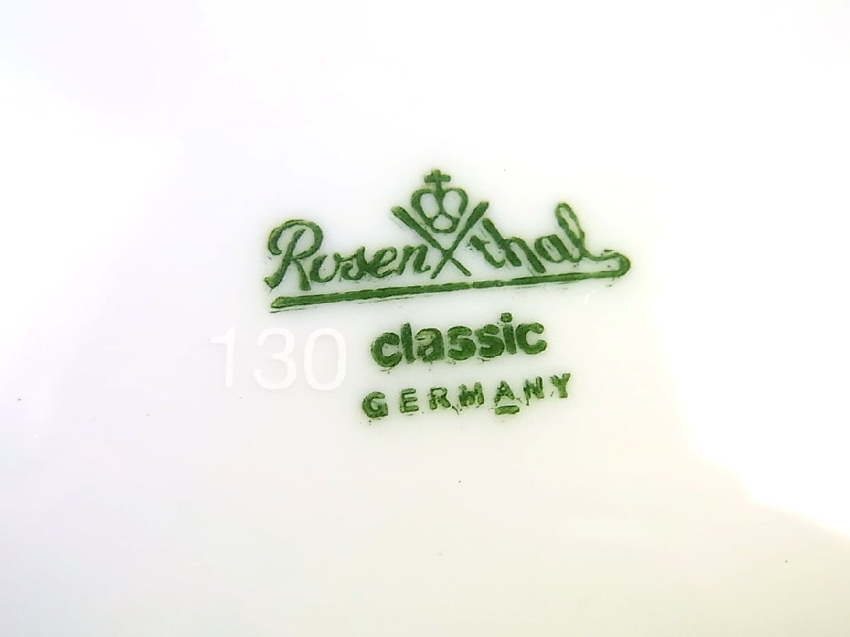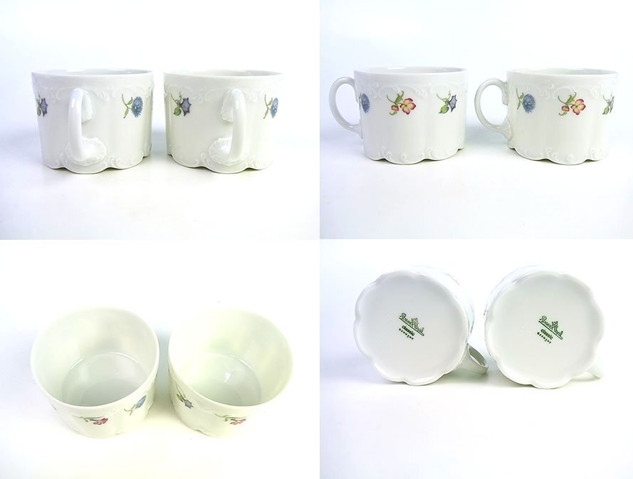 | ■■■メーカー■■■ Rosen Thal/ローゼンタール ■■■品 名■■■ クラシック カップ&ソーサー ■■■サ イ ズ(約)■■■ カップ:口径7.2×高さ5.2cm プレート:直径15×高さ1.3cm ■■■状 態■■■ 【美品】 カップ1個の口元にざらつきがございますが、他、目立つ傷、汚れなく綺麗な状態です。保管品であることをご理解の上、ご入札ください。 ※お譲りする物は画像の物が全てです。 ※状態や付属品の有無につきましては、できるだけ詳細を記載するよう心掛けておりますが、見落しや欠品があった場合でも現状優先となります。状態や付属品等に関して、気になることがございましたら、事前に必ずご質問くださいませ。 ■■■商品説明■■■ ★★1879年創立のドイツの食器ブランド「ローゼンタール」★★ 1879年、フィリップ・ローゼンタールがドイツ南部バイエルン州のエアカースロイト城に食器の絵付け工房を開いたテーブルウエアのトップブランド。 ●リムのエンボスが美しいカップ。 ●小花(赤系・青系)の可愛いデザイン。 ●カラー:白/ピンク/水色/赤 他 ※詳しくは画像をご確認下さい。 ●ナンバー(裏面):カップ 125(2個)/プレート 107/130 【付属品】なし |