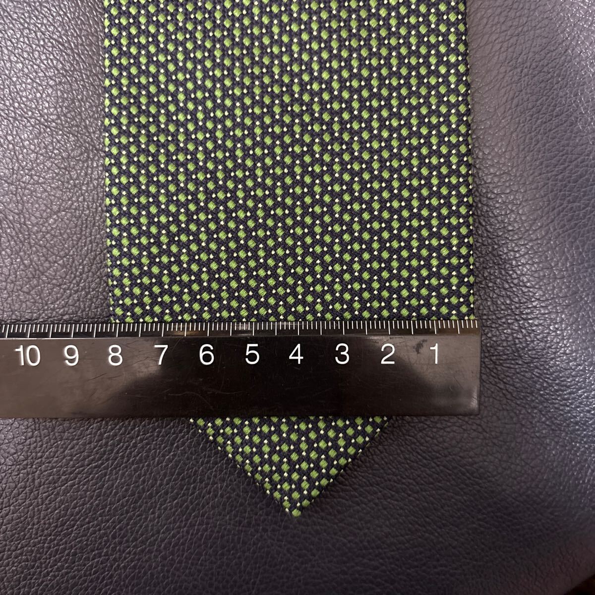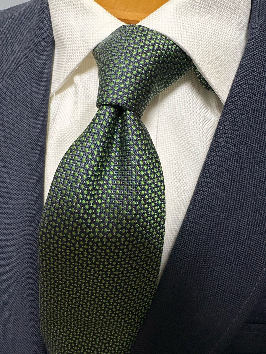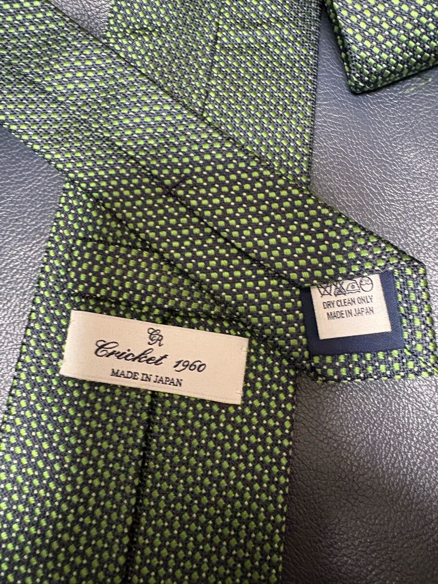 【美品】CRICKET 日本製高級シルクネクタイ グリーン基調 大剣約8cm ネイビー クリケット 2504