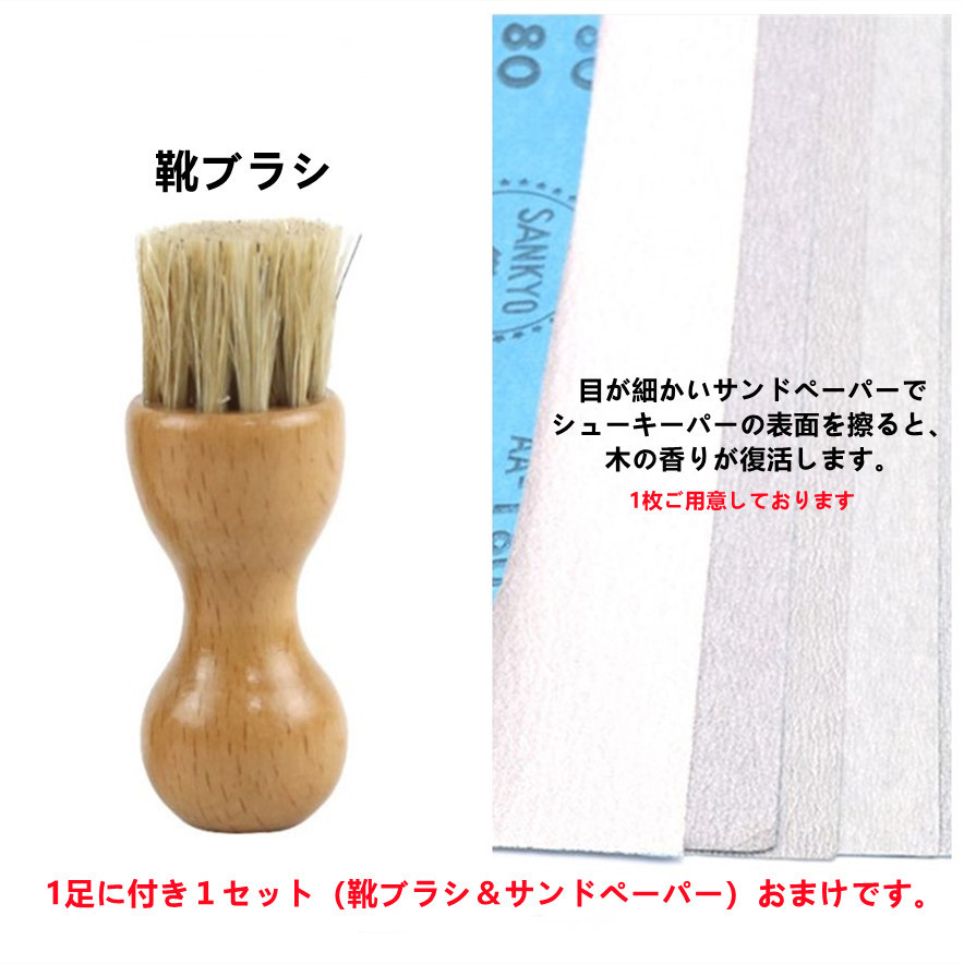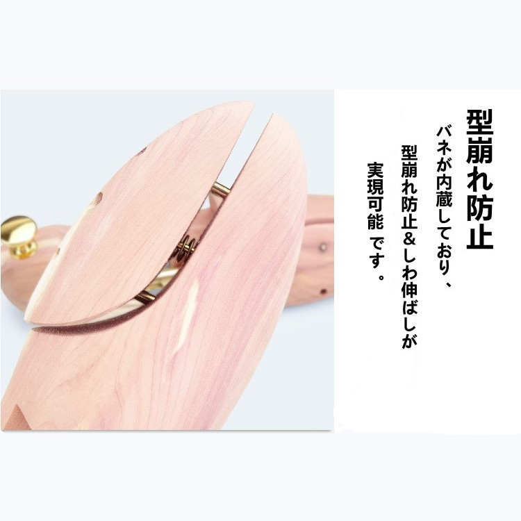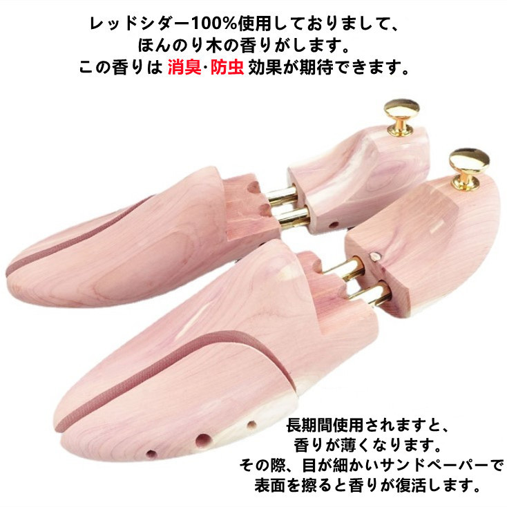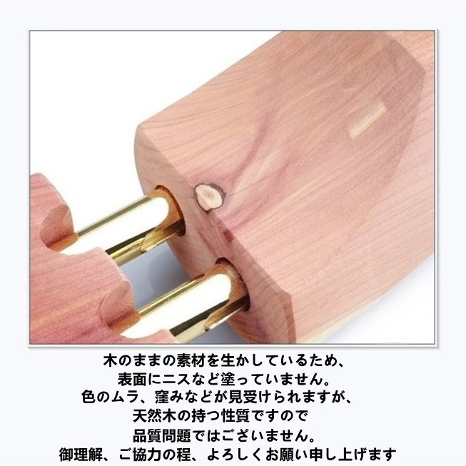 | ※サイズ表を確認してから、ご購入よろしくお願いします。 ※サイズが合わなかった場合、交換を承り致します。 ※1点ごとに職人が作っていますので、 細かいキズや補修の跡が見受けられる場合があります。 ※おまけですが、1足につき、 1セット(靴ブラシ&サンドペーパー)差し上げます。 レッドシダーシューキーパーです。 職人が1点1点手作りし、あなたの大切な 靴を型崩れから守ってくれます。 木のそのままの素材を生かしています。 ニスが塗ってあるシューキーパーですと、 靴を脱いですぐに入れるとカビが はえてしまう事がありますが、 木のそのままの素材を生かしているため、 靴を脱いですぐに入れても大丈夫です。 「シューキーパー」?という方もいらっしゃるかも しれませんので、簡単に説明させて頂きますと、 脱いだ靴をそのままにし、型崩れを起こすと、 革の耐久性が非常に落ちます。 クリームを塗ればある程度は持ちますが、 このシューキーパーを使っている靴と 使っていない靴とでは、使用出来る期間が全く違います。 私もそう感じますし、ネットで検索すると、 実験している方もいます。 そのような、効果がある商品です。 細かいサイズ調整は、スプリング式なので、 靴の型崩れが起きにくく、綺麗な状態で保管出来ます。 スプリング式なので、伸縮し内面から靴の 型崩れを防止します。 素材:レッドシダー レッドシダーシューキーパー5大効果 1、靴ジワを伸ばし 2、形崩れ防止 3、除湿・乾燥 4、脱臭・消臭 5、防虫 是非、一度ご利用してみませんか? 大切なお客様へ 商品ご覧頂き、誠に有難うございます。 落札者様のご要望にお答えできるように頑張ります。 お急ぎの方、領収証ご希望の方などは、質問欄や 取引ナビにてご連絡下さい。 多数商品落札頂いた場合、同梱はほぼすべての商品が可能です。 (一部非対応有) 是非、送料節約にご利用下さい。 定形外発送等の追跡、補償がない発送の場合、郵便物の不着、 商品の補償は出来かねますので、何卒ご了承下さい。 不安な方は、ゆうパック発送等をお選び下さい。 多数落札後は、まとめ依頼申請か取引ナビにて必ず落札商品すべてを ご連絡下さい。ご連絡がありませんと、同梱出来ない 場合があります。 また、落札後のご連絡は、落札後にヤフーから届くメールの内容を 確認して頂き、取引ナビにてその内容をご連絡下さいませ。 土日祭日はお休みを頂いております。 何卒、ご了承下さい。 迅速で、気持ちの良いお取引を心掛けます! 皆様のご入札お待ちしております。 | ||