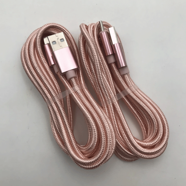 2本セット 送料無料 2m タイプC Type-C端子用 充電器 USB ナイロンケーブル ローズゴールド ピンク 高速 データ通信 急速充電 充電ケーブル