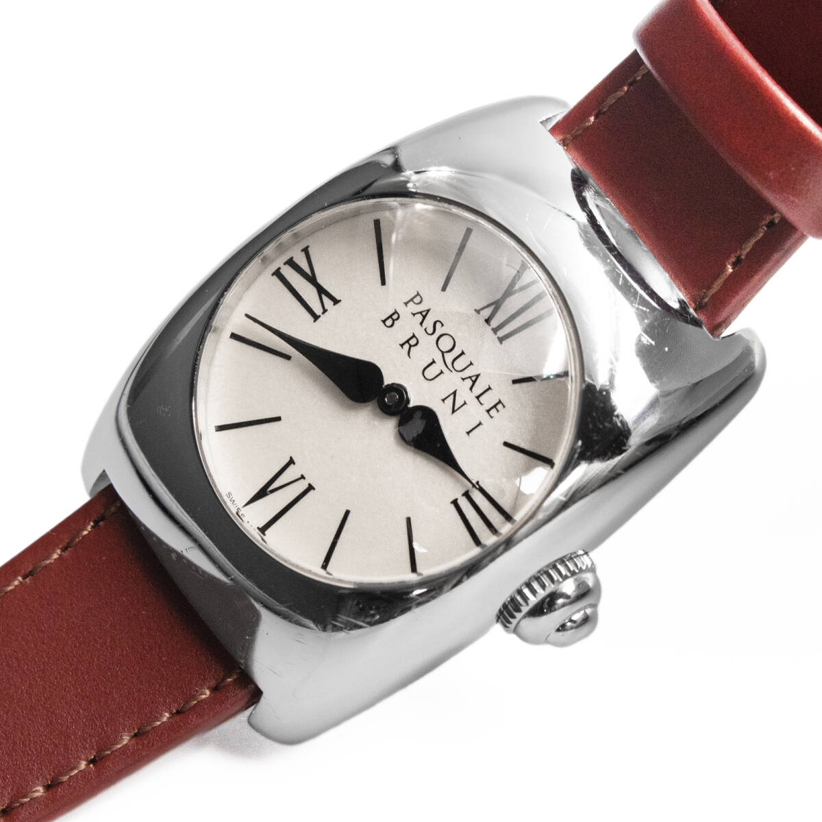 送料無料 パスクワーレブルーニ 腕時計 レディース 白 アイボリー 赤 ボルドー 珍しい イタリア製 ブランド 四角 トノー型 ロゴ 本革 X170