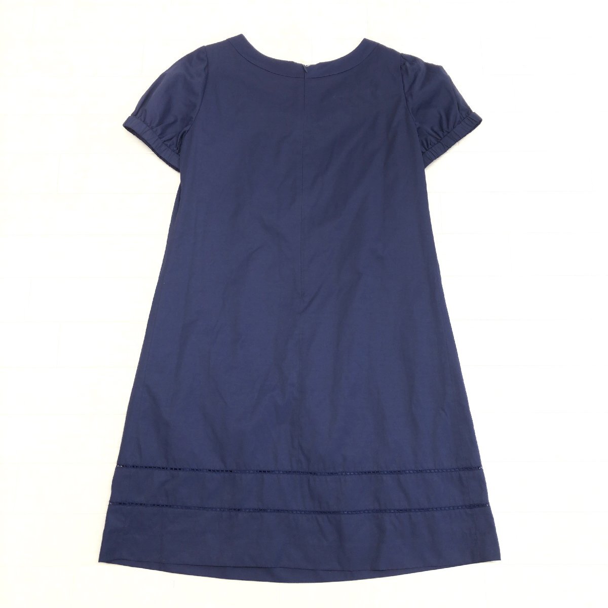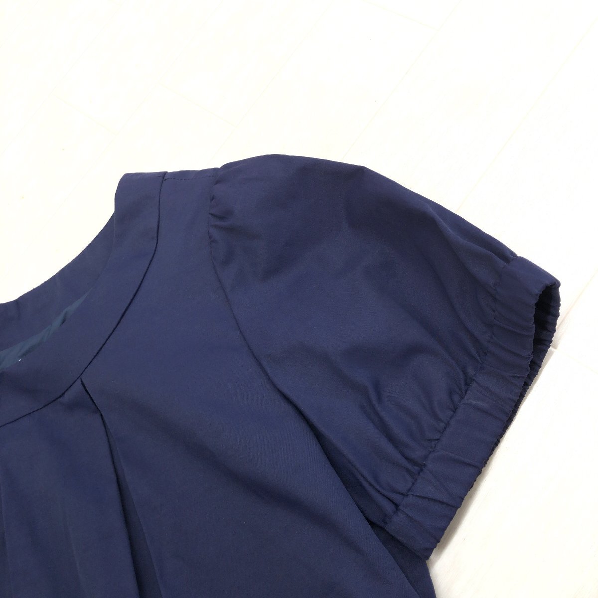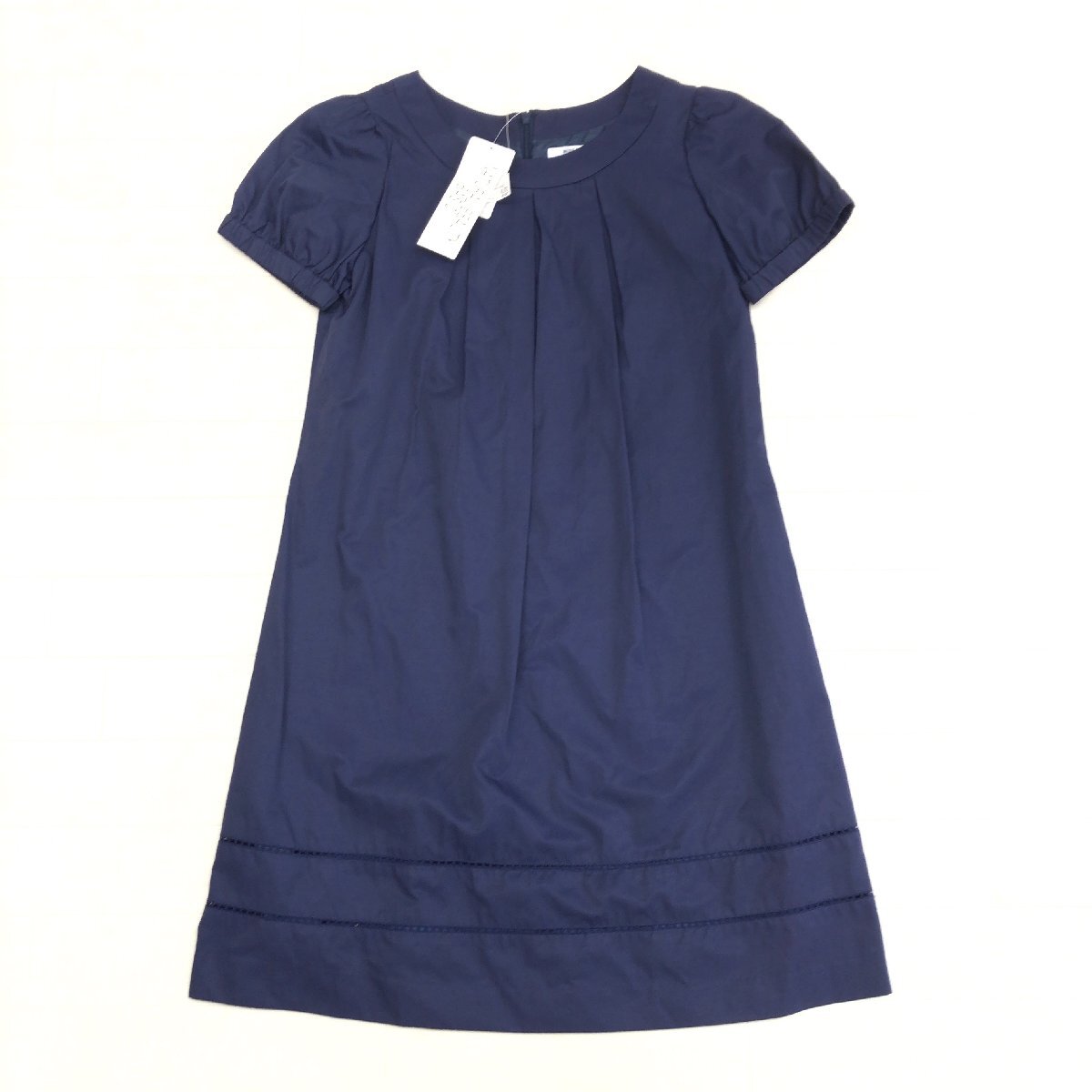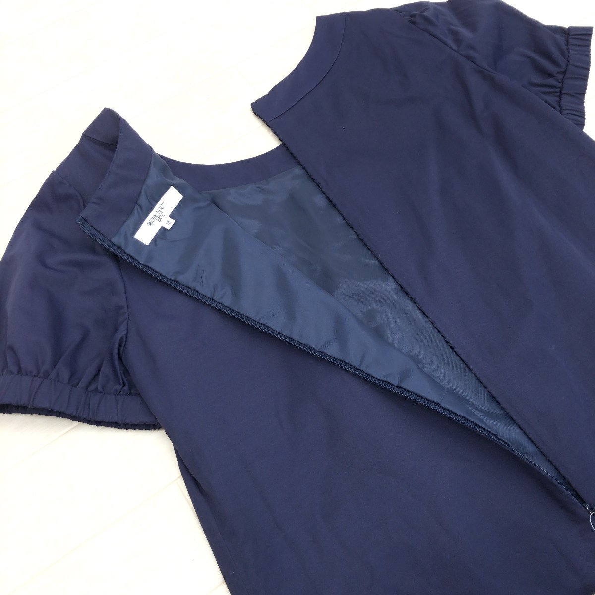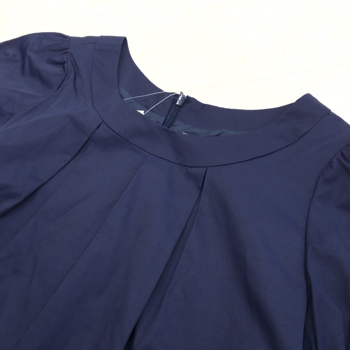 新品 NATURAL BEAUTY BASIC ナチュラルビューティベーシック 定価9,400円+税 タック Aライン ドレス ワンピース M ネイビー 半袖 未使用