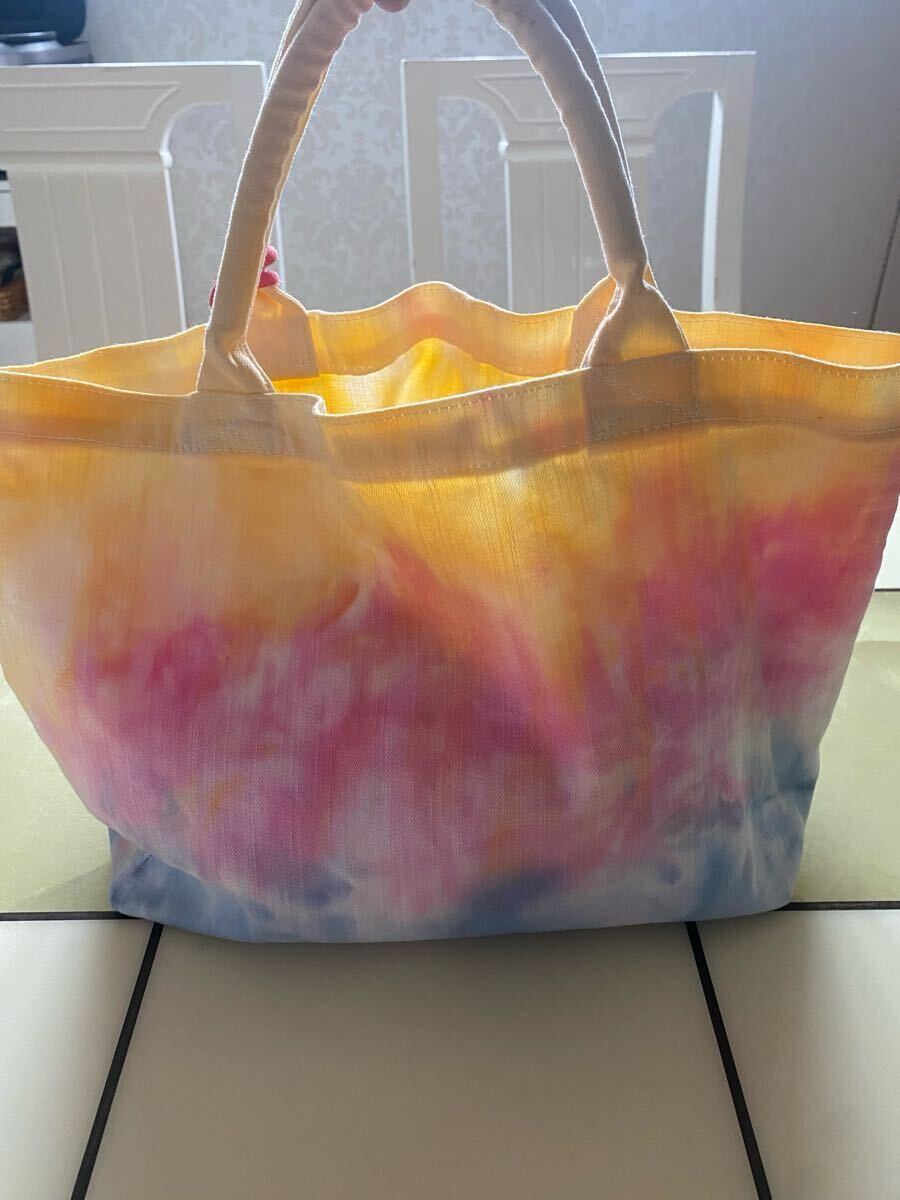 サイズ:私の素人サイズになりますが、マチは10センチ位、横は36センチ位、縦は22センチ位です。