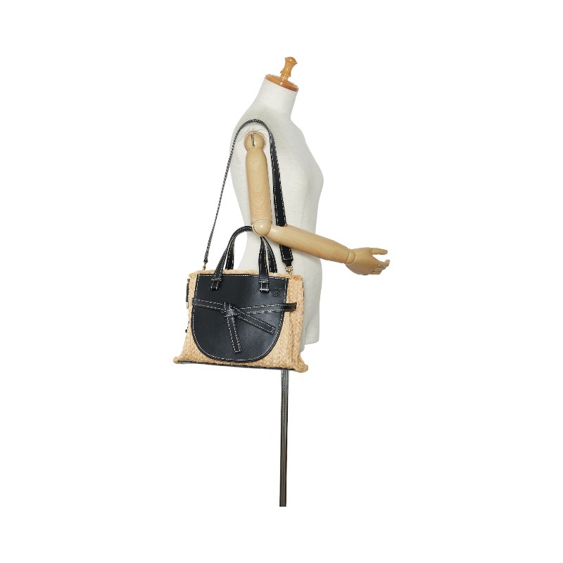 ロエベ アナグラム ゲート トップハンドル スモール ハンドバッグ ショルダーバッグ 2WAY 32913U61 ブラック ベージュ LOEWE 【中古】