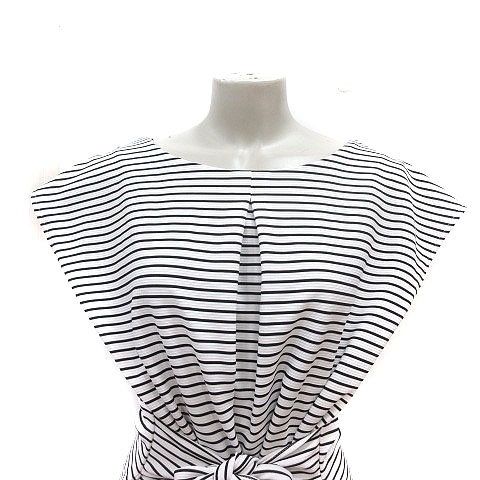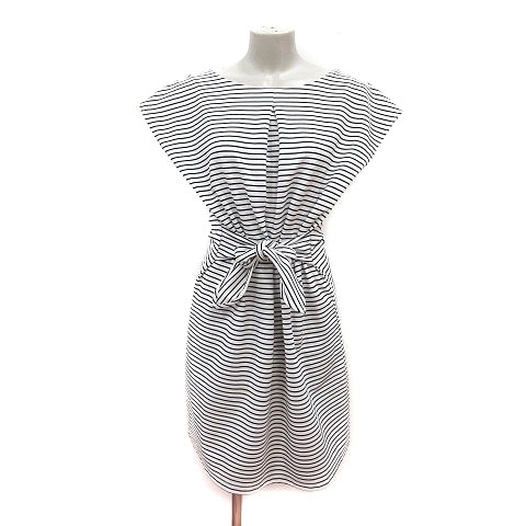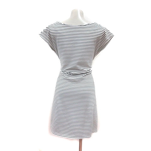 テチチ Te chichi ワンピース ひざ丈 ボーダー ウエストマーク フレンチスリーブ M 白 ホワイト 黒 ブラック /MS レディース