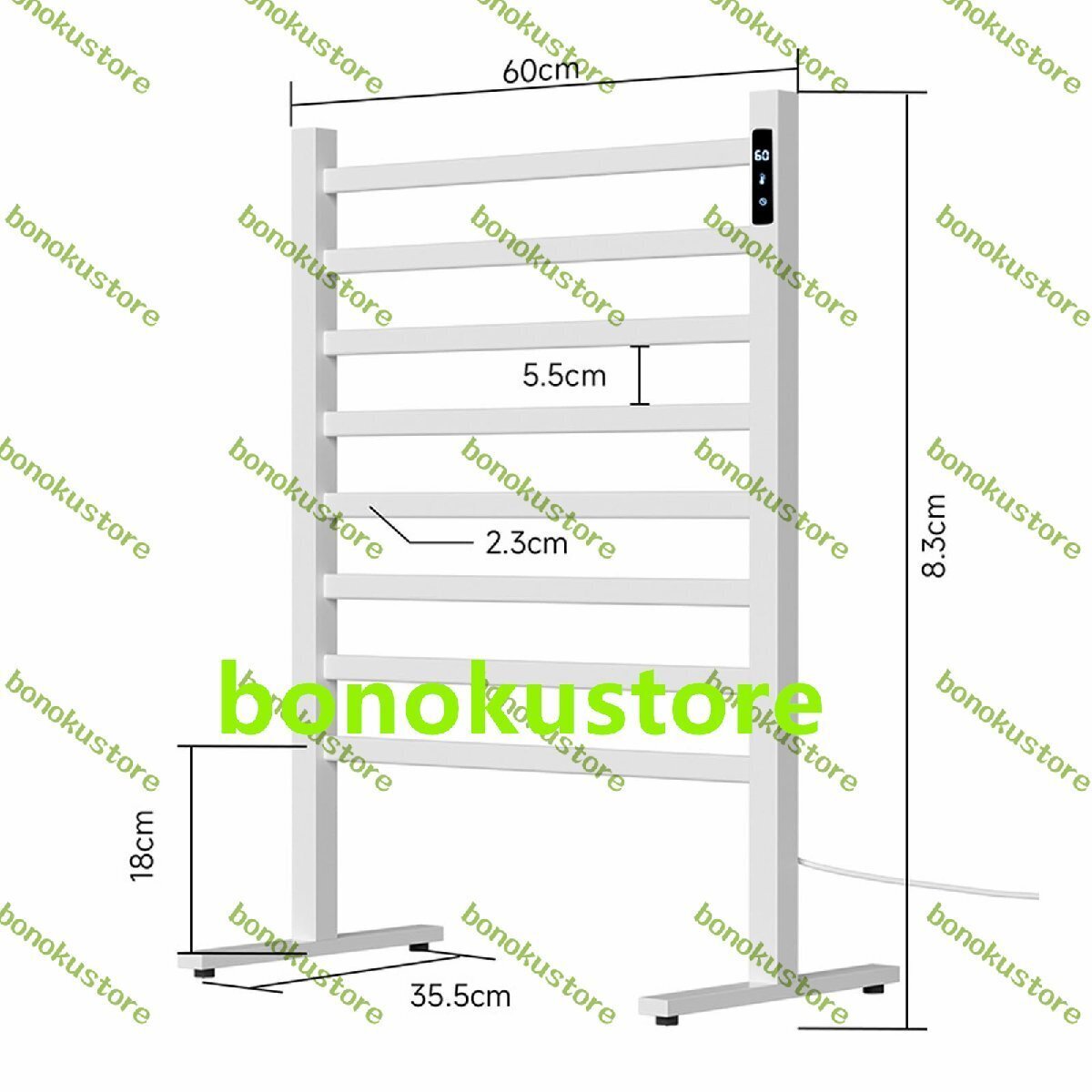 詳細スマート LED ディスプレイ: いつでも温度 (113-149°F) を調整でき、乾燥設定時間 (1-24 時間) も調整できるので便利です。長い電源コード: 4.92 フィートの長い電源コードにより、柔軟性が高まり、使用時の安全性が大幅に向上します。用途家庭のバスルーム、チェックルーム、ホテル、スパなどに適しています。タオルや衣類などを乾燥させたり置いたりするのに使用できます。周囲の温度に影響を与えることなく、春、夏、秋、冬のすべての季節に使用できます。仕様モデル: TS03-6080材質: アルミニウムプロセス: 高温スプレースタイル: モダン色: ホワイト電源: コード付き電気取り付けタイプ: 床置き組み立てが必要: はい定格電圧: 110V定格周波数: 60Hz定格電力: 180W温度調整範囲: 一定温度 45-65℃/113-149°Fタイミング範囲: 1-24 時間総荷重: 8-10kg防水等級: IPX3ブラケット角管サイズ: 3*3cm電源コード長さ: 1.5m間隔: 5.5cm底部サポート高さ: 18cm製品サイズ: 60*35.5*83cmパッケージサイズ: 85*65*8cm総重量: 2.8kg正味重量: 1.8kg