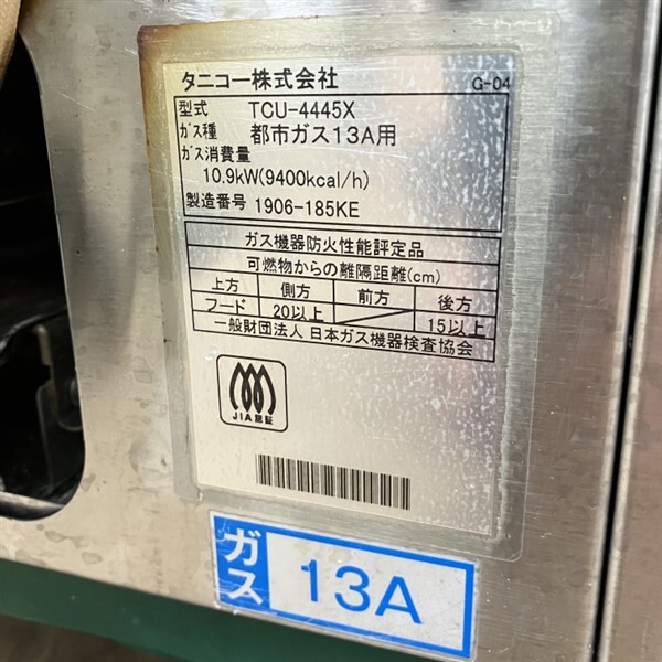 | ガス種 | 都市ガス |