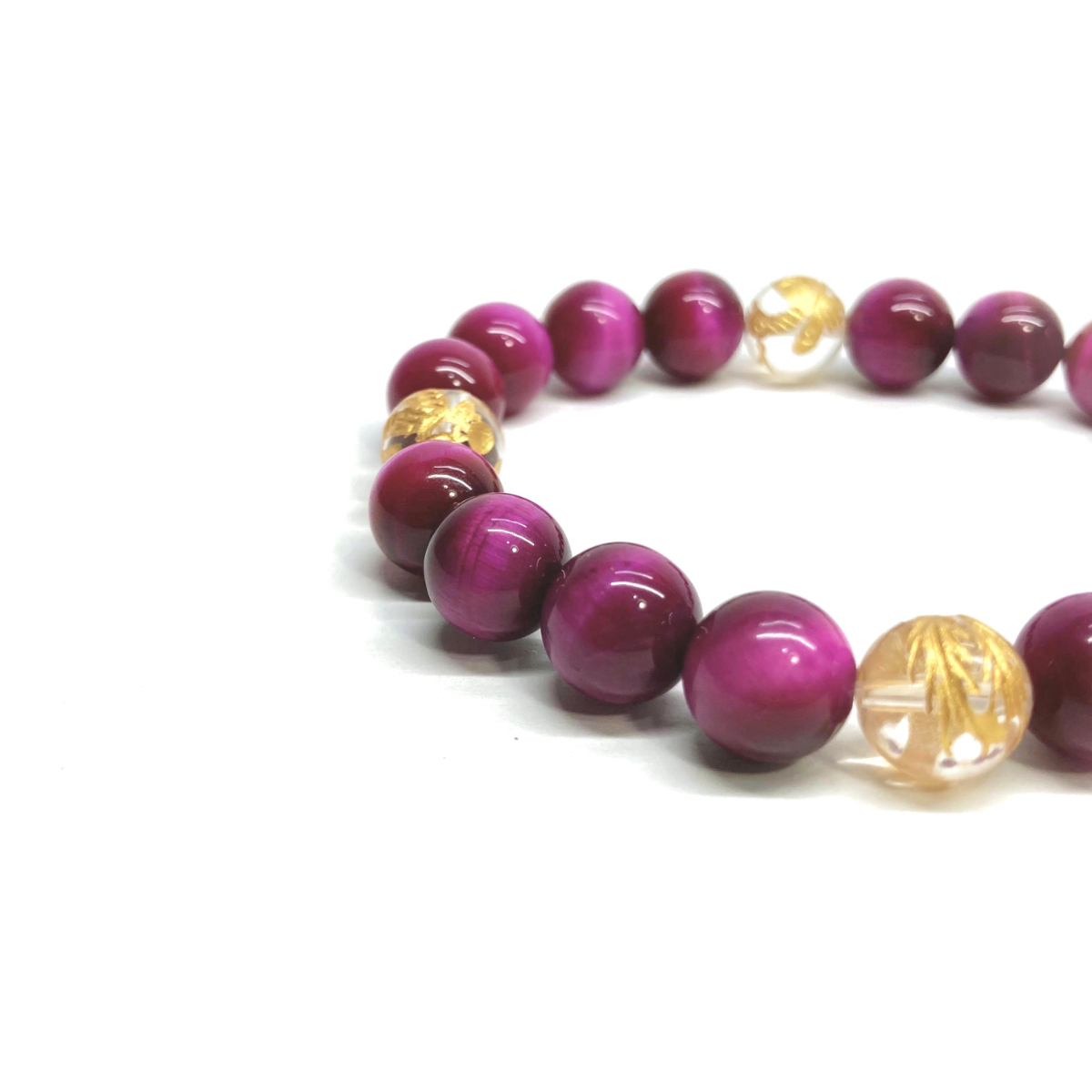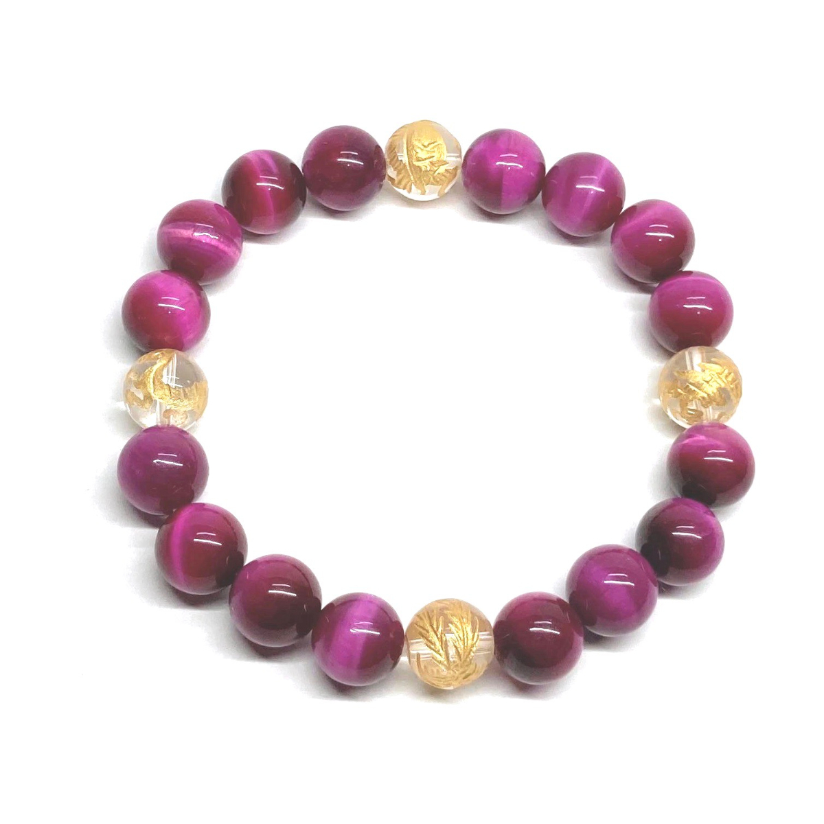 10mm 四神獣金彫水晶×ピンクタイガーアイ パワーストーン ブレスレット天然石 運気上昇 開運 金運 恋愛運 青龍 白虎 玄武 朱雀 ☆