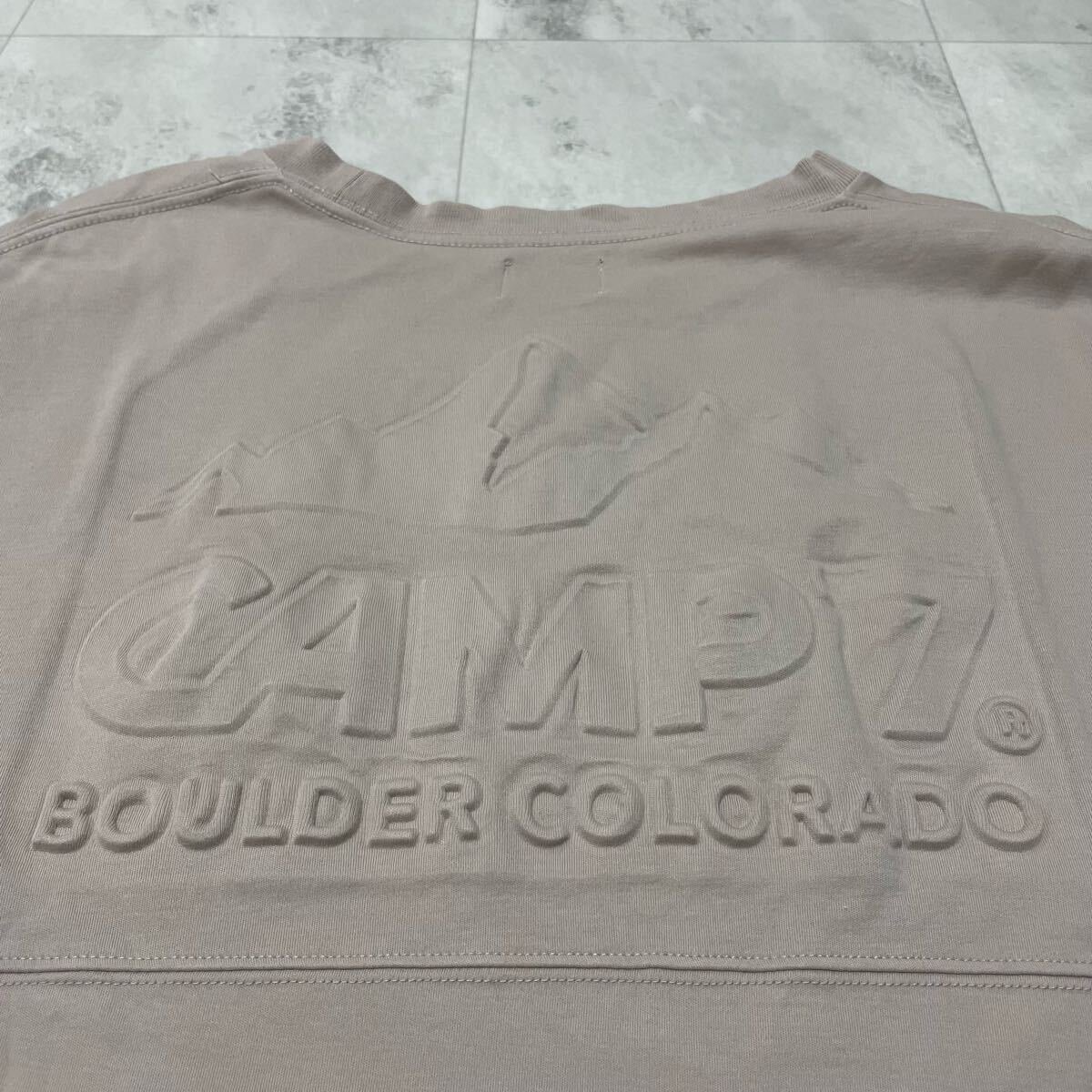 CAMP7 キャンプセブン Tシャツ T-shirt TEE 半袖 アウトドア エンボス加工 ビッグロゴ ベージュ サイズM 玉SS3282
