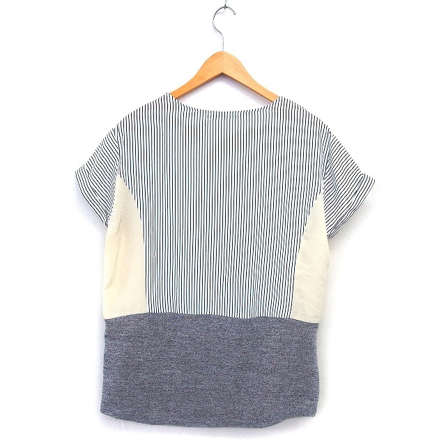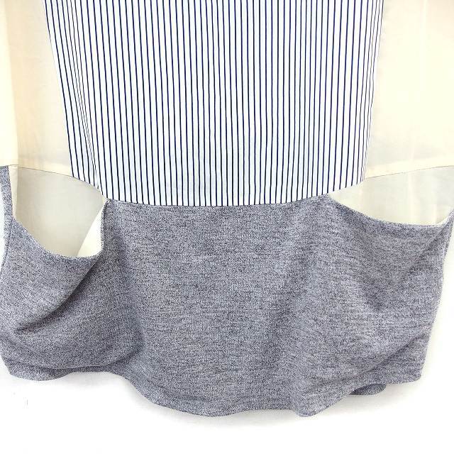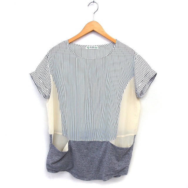 ビームスハート BEAMS HEART チュニック ブラウス ストライプ 透け感 切替 ニット ロールアップ 五分袖 紺 ネイビー /NT18 レディース