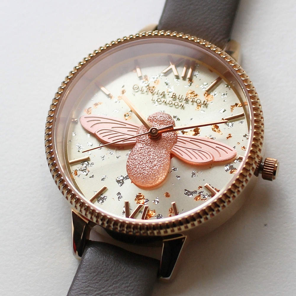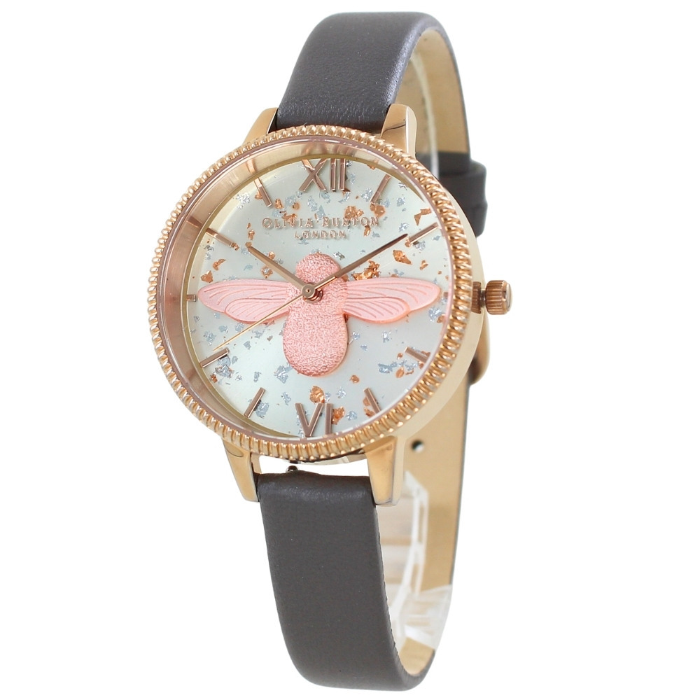 ★★2012年に設立したロンドン発のファッションウォッチブランドです。【 セレスティアル 3D ビー コレクション 】文字盤には上品なラメを散らばめた宇宙の神秘的なイメージを演出したコレクションです。オリビアバートンのブランドイメージの一つでもある蜂がデザインされた文字盤です。立体感のある3Dのミツバチで他にはない印象的なスタイルに。肌触りの良い滑らかでやわらかなソフトレザーを仕様しています。◎ご自分へのご褒美に!◎女友達の誕生日のお祝いに。◎娘、姪っ子のお祝い、妻、母の日のプレゼントに。◎ずっと使って欲しいプレゼントに。◎日常的に使える腕時計は贈り物にもおすすめです。■ブランド:OLIVIA BURTON(オリビアバートン)■クオーツ(電池式)■電池交換について:量販店の時計売り場や最寄りの腕時計店で可能なモデルです。■防水性:なし■サイズ(約)時計の幅:34mm(リューズを含まず)ベルト腕周り:最短12cm~最長18cm■ブランド専用BOX※ブランドBOXは入荷月によって異なる場合がございます。予めご了承くださいませ。■保証期間:1年間OB16GD06