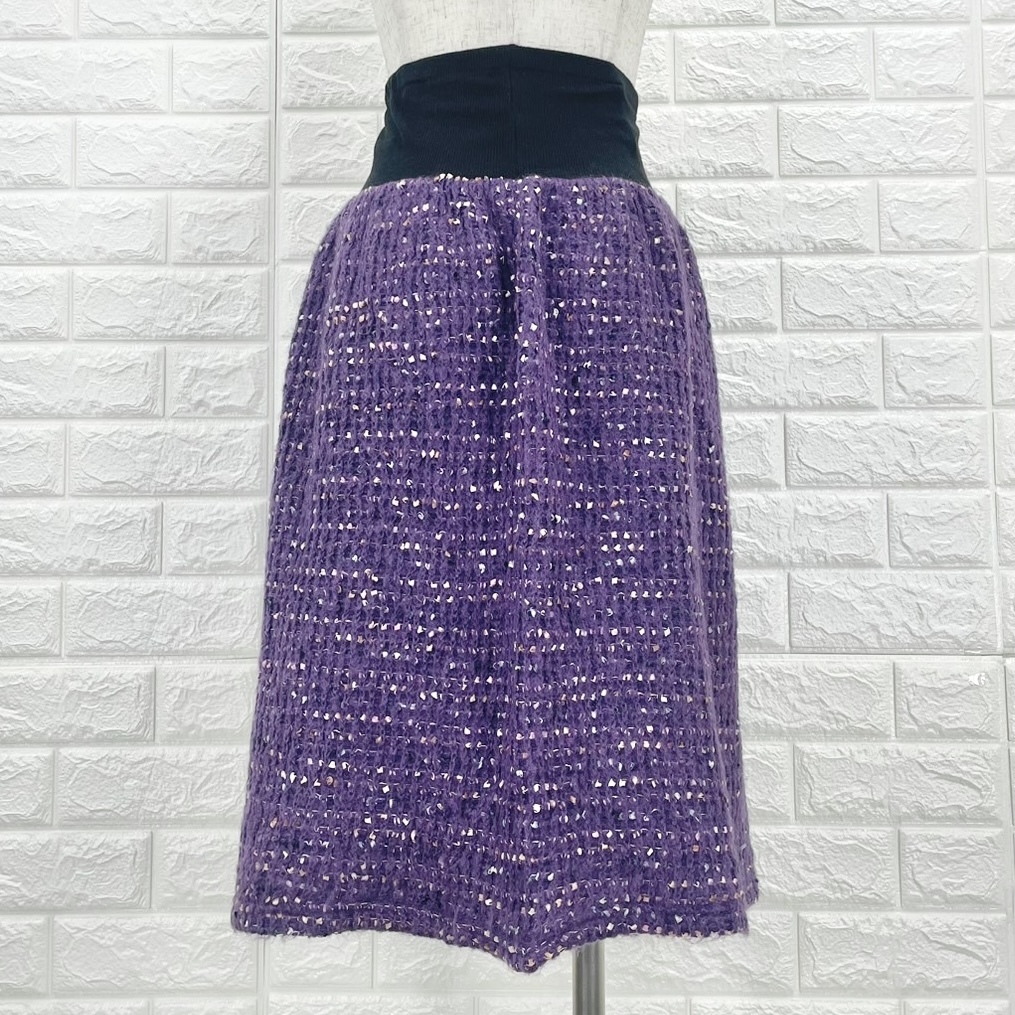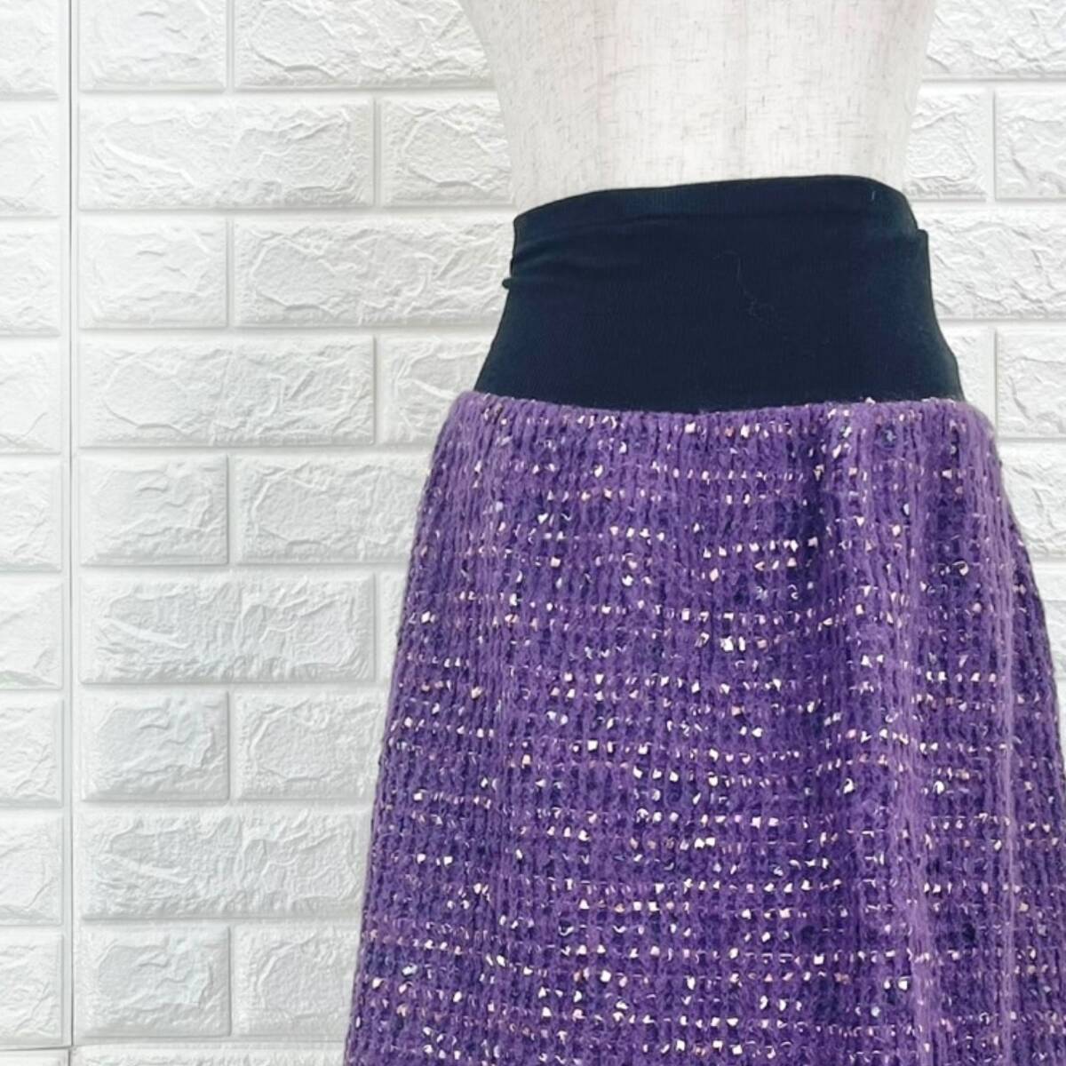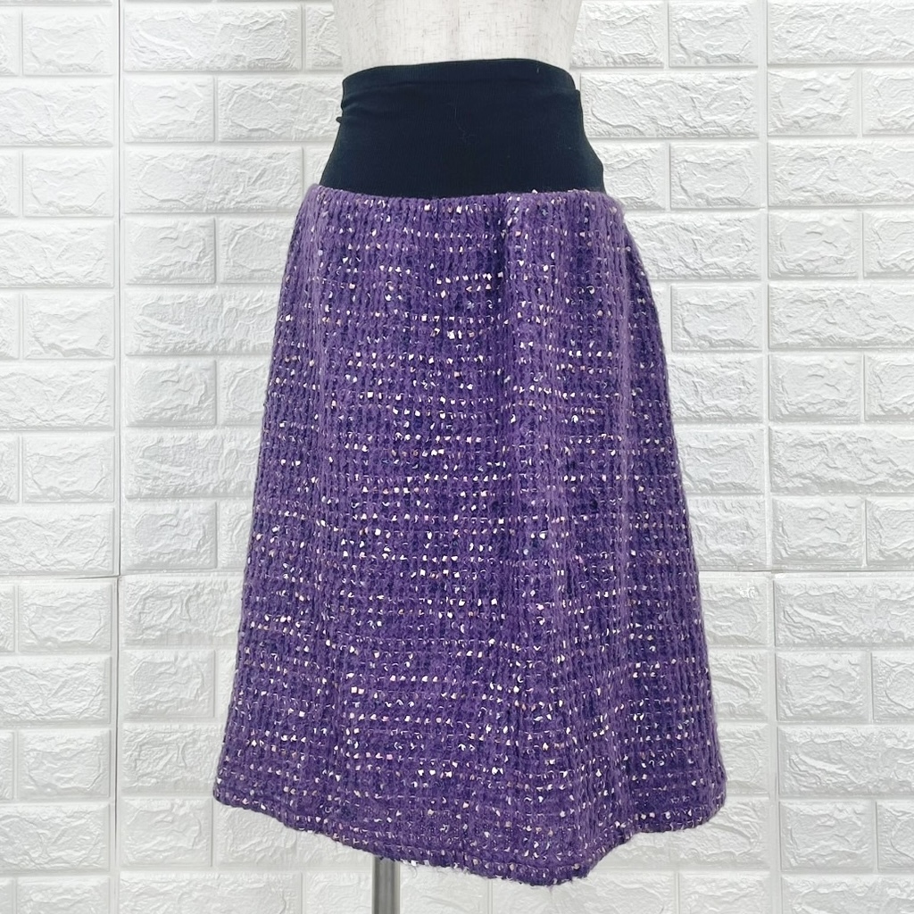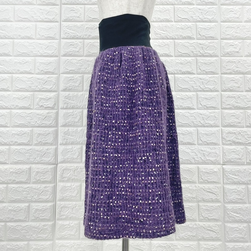 【A3615】carnelian カーネリアン スカート レディース フレア ハイウエスト パープルxブラック ラメ入り エレガント ひざ丈 Mサイズ