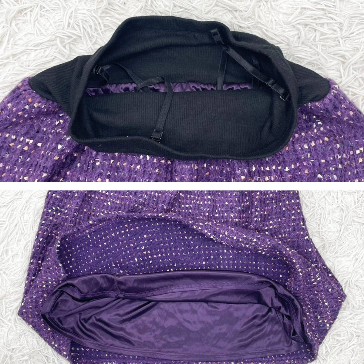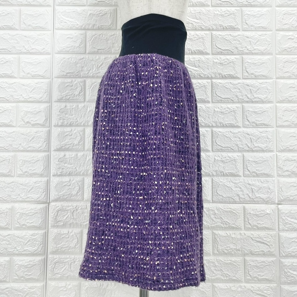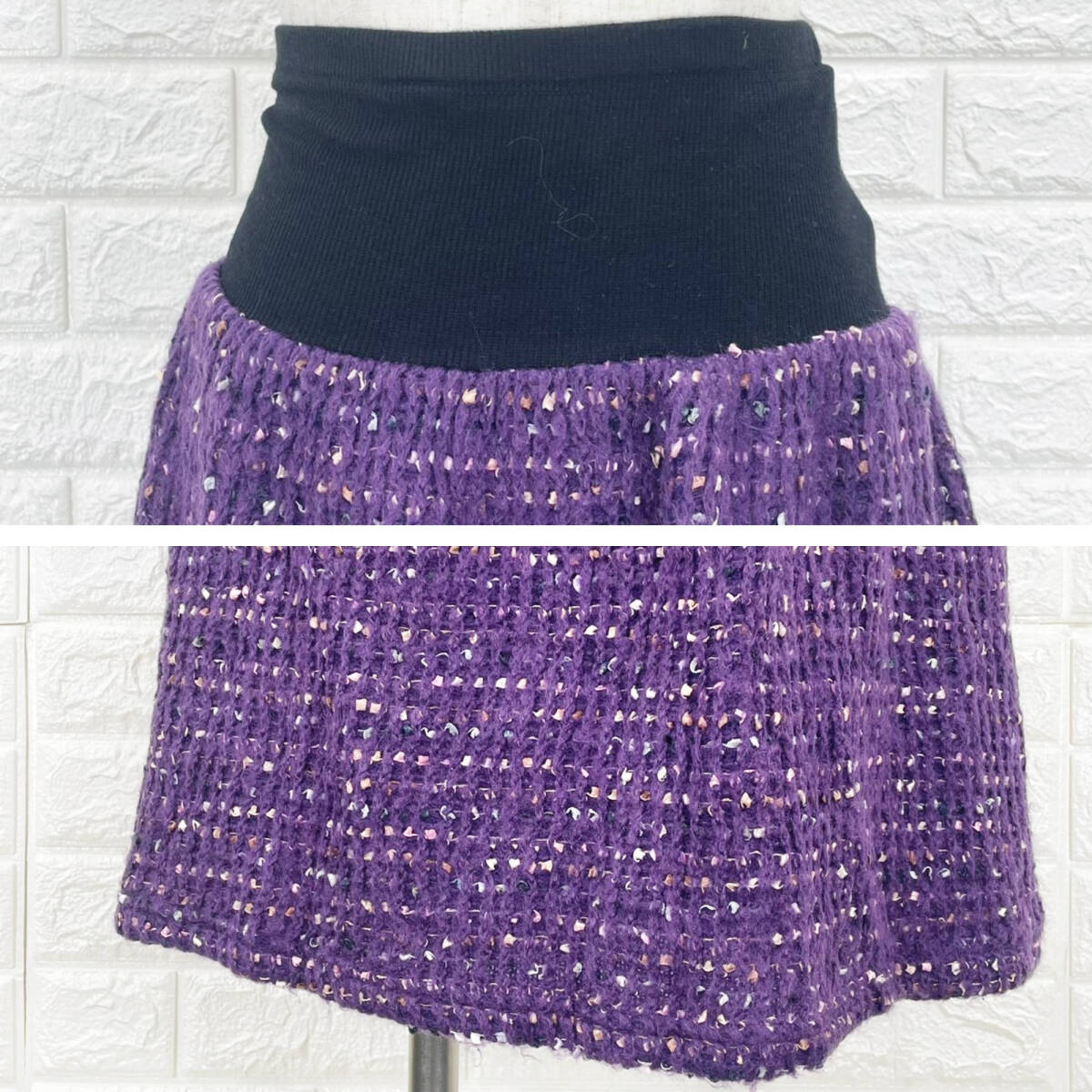【A3615】carnelian カーネリアン スカート レディース フレア ハイウエスト パープルxブラック ラメ入り エレガント ひざ丈 Mサイズ