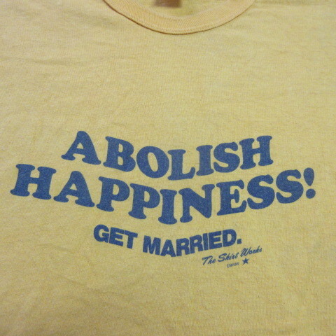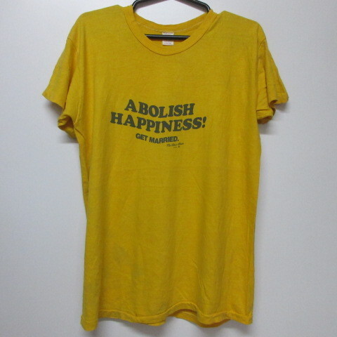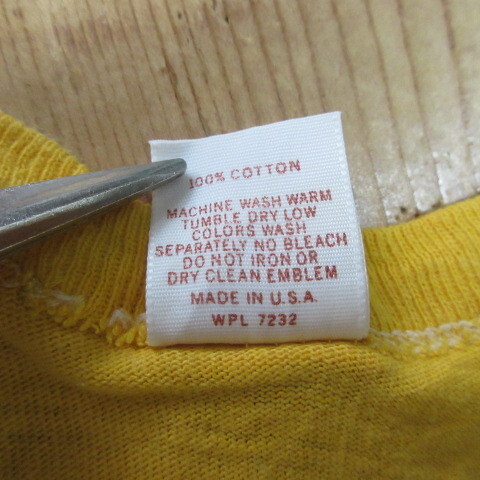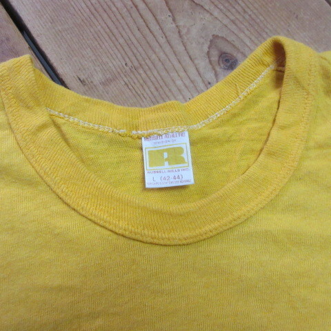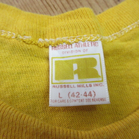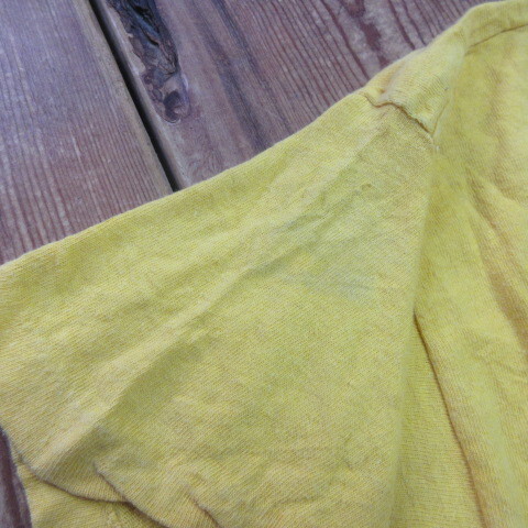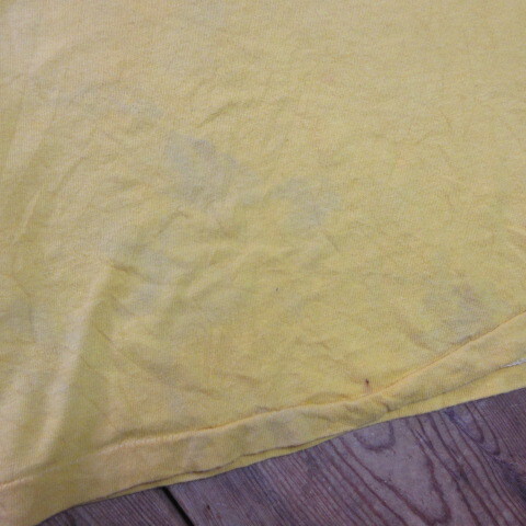 ★Size L (表記 L)肩幅 45cm, 身幅 52cm , 着丈 66cm,袖丈 15cm ★アメリカ古着 70s頃 Tシャツ 雰囲気良いです。 ★Condition 10/7使用感、毛玉等はございますが、目立つダメージはありません、前下や袖などに汚れ★Material 100%cotton ★Color 黄色★Made in USA ご覧いただきありがとうございます。広島の古着屋ジョージアです。ヤフオクさんや、ヤフーショッピングさんで、30年前の在庫の オールドTシャツを、 どんどん出品中です。どうぞご覧ください。クリックポストでの同梱は出来ませんが、レターパックプラス、ヤマト便での同梱が出来ます
