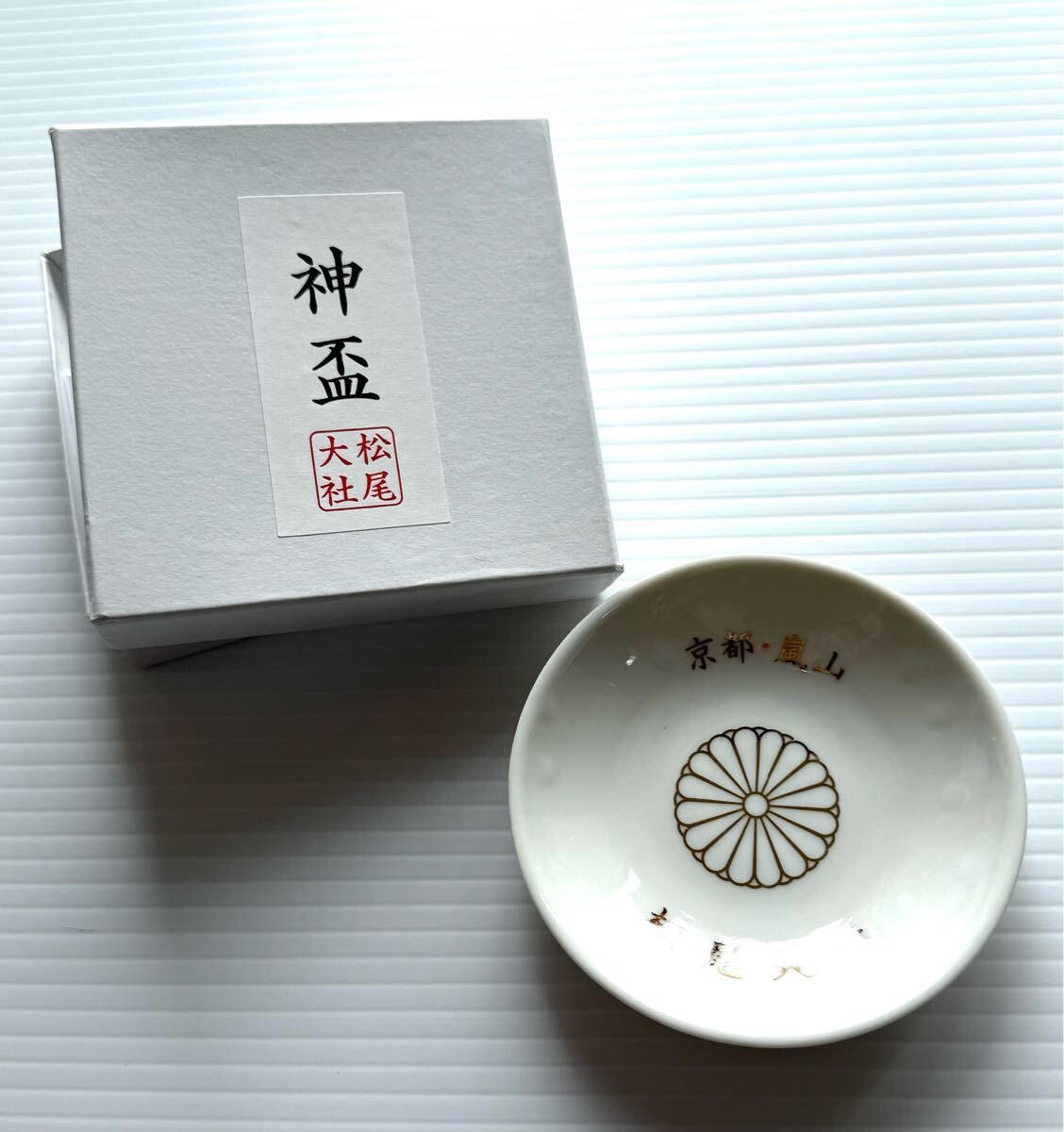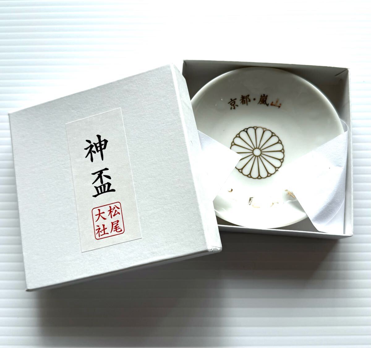 神盃 神具 松尾大社 小皿 十六菊華 京都 嵐山 酒器 未使用 約9.5cm 白×金 京都最古 神社 式内社 大山咋神 中津島姫命 酒 四神 白虎 招福