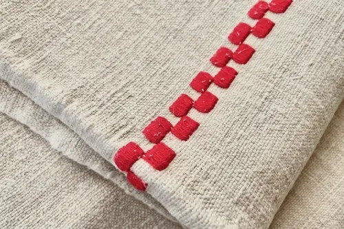 | ハンガリー製アンティーク、麻の栽培から織までを家庭で行うホームスパンリネン、太い手紡ぎ糸で織られたホームスパンリネンで作られたグレインサック(穀物用の麻袋)です。ナチュラルなお色味のホームスパンリネンに赤のライン刺繍、イニシャル刺繍の入ったお品です、イニシャル、ラインの刺繍は片面のみ入っています。このままクッションを入れても、バッグなどのハンドメイドにお勧めです。 *サイズ* 51㎝×101㎝(袋状での採寸となります、袋を解くと倍の布地が取れます) *コンディション* 未使用、又は同様の目立つダメージの無い状態の良いお品です。 コメント コンディションの良いアンティークのお品を、厳選してご紹介しておりますが、新品では在りません。アンティークのお品にご理解のある方のみ、入札をお待ちしております。なおトラブル防止の為、新規の方、マイナス評価の多い方の入札はご遠慮頂いております。 落札後3日以内にご連絡可能な方。ご質問等ございましたら、お気軽にお尋ね下さい。 *送料について* 送料は梱包前の商品の大きさ、重量にて正確に計算しております。おまけや梱包により生じた超過分、割引が適応された場合の差額分につきましては、請求、返金はしておりません。どうぞご理解頂けます様宜しお願い致します。 *在庫について* ショップの在庫を掲載している関係上、タイムラグにより在庫の有無に差異が生じる可能性が ございます、また予告無く早期終了となる場合がございます。あらかじめご了承下さい。なおショップ掲載品との同梱は出来かねます、ご理解の程宜しくお願い致します。 | |||