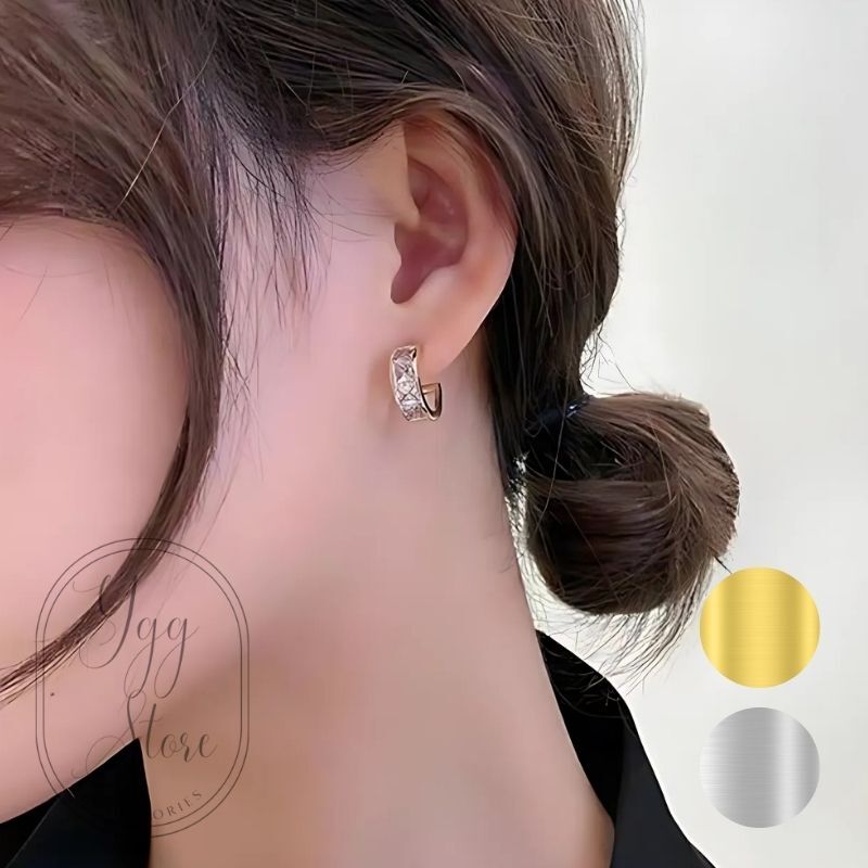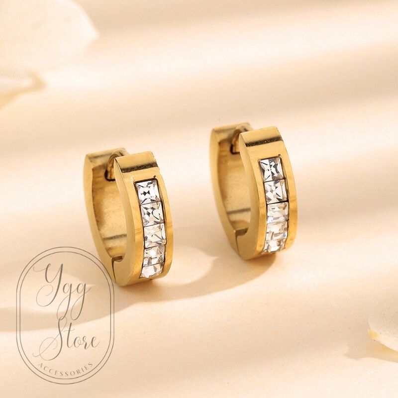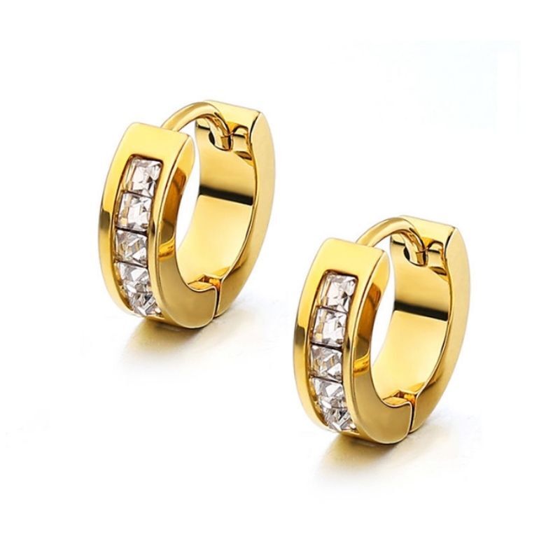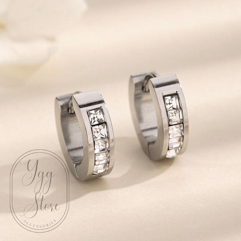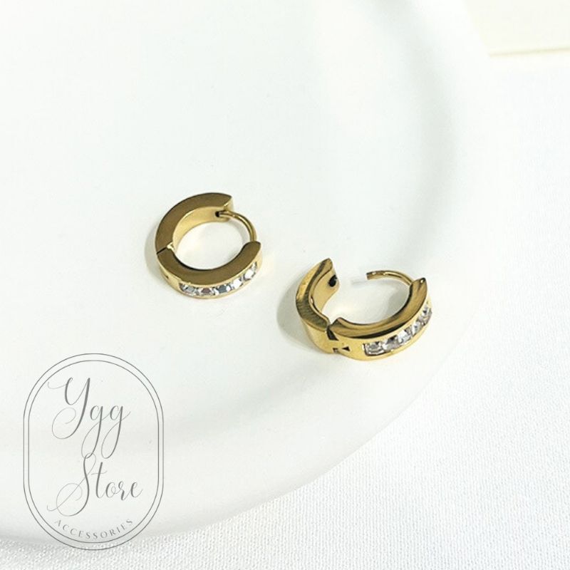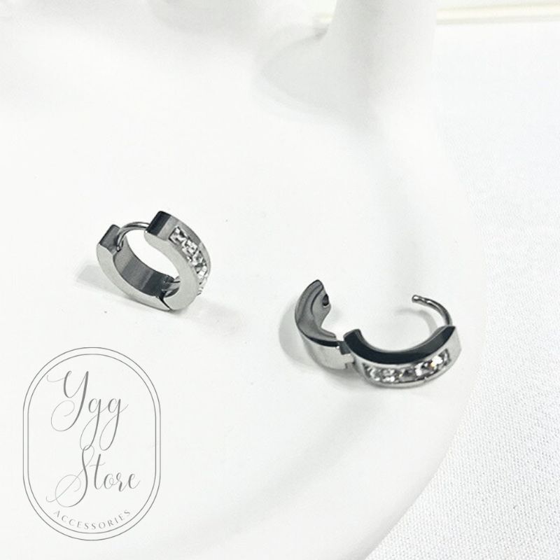 フープピアス キャッチレス ワンタッチ ジルコニア ストーン キラキラ ボリューム ミニ 両耳用 ペア 小ぶり 小さめ シルバー ゴールド シンプル きれいめ 男女兼用