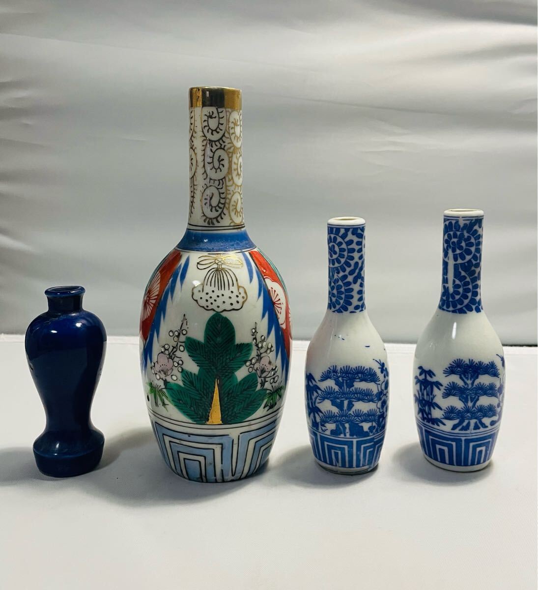アンティーク神棚花器まとめて4点になります。長年倉庫保管していたので汚れや擦り傷などあります。御理解いただける方よろしくお願いします。素人寸法になります。サイズ高さ19.5cm 9.2cm 12.8cmx2