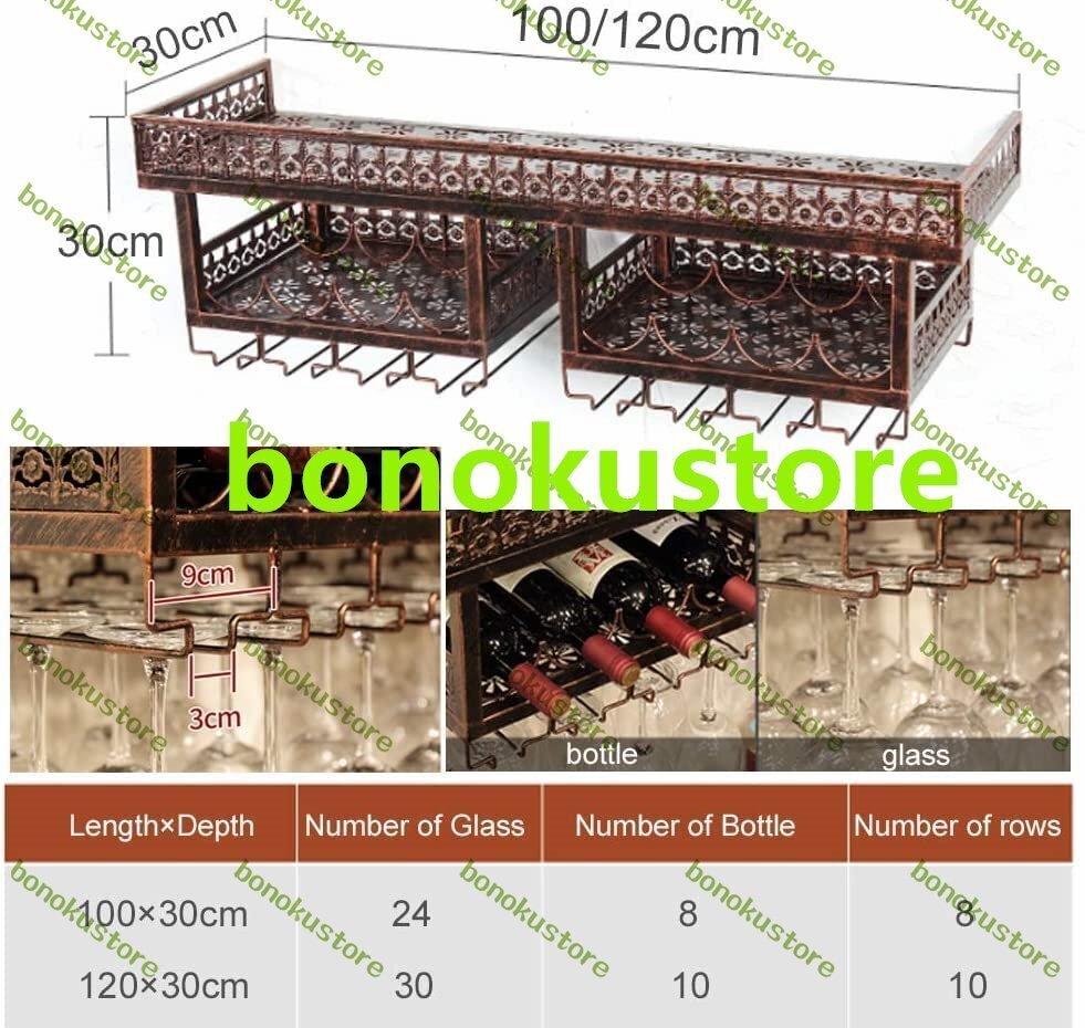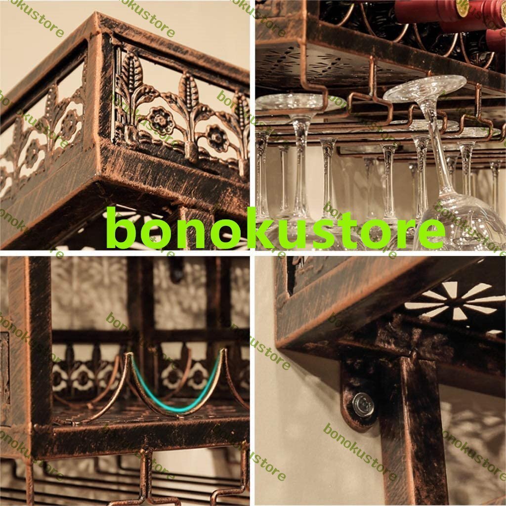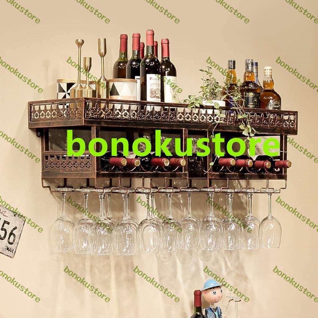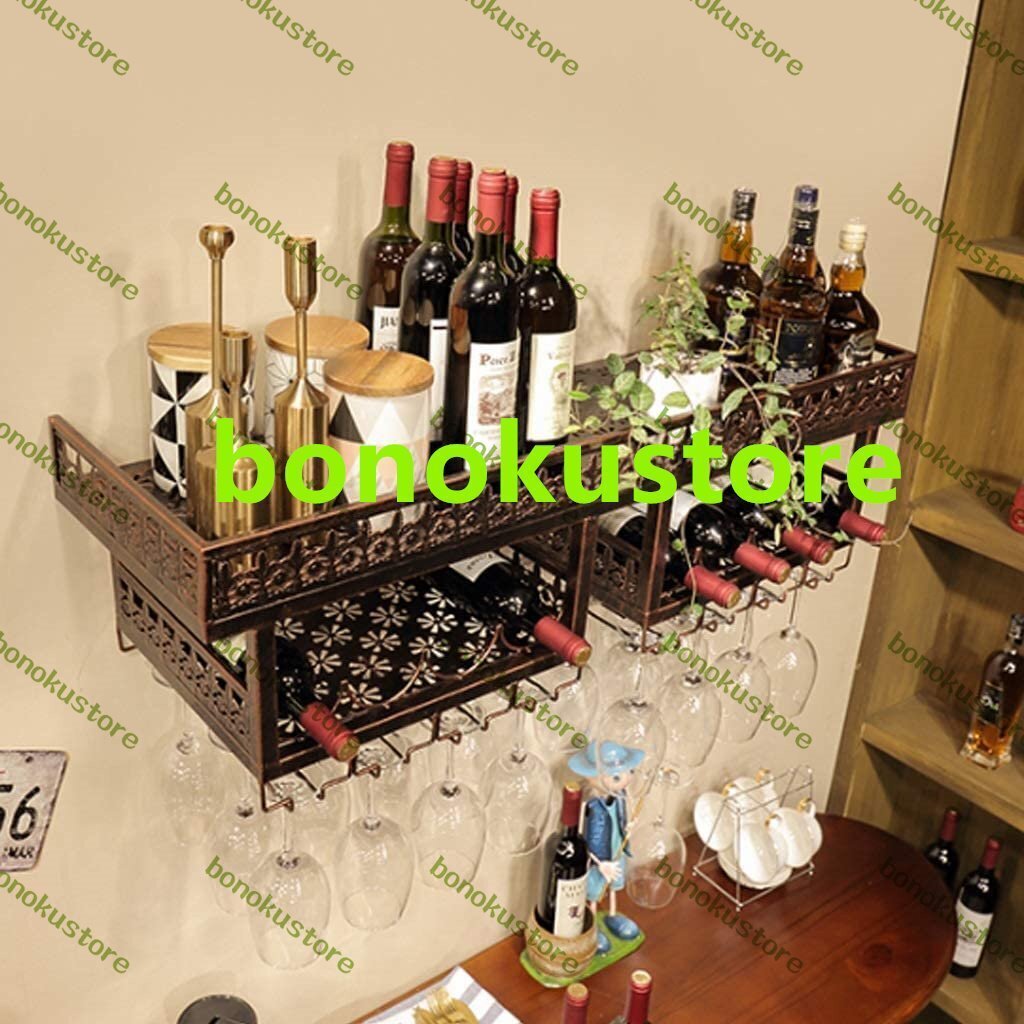 ワインラックインダストリアル ヴィンテージ 2段ワインラック 壁掛け 素朴な金属製 吊り下げ式ワインボトルホルダー ステムウェアラック 壁掛けワインホルダー バー ワインセラー キッチン用