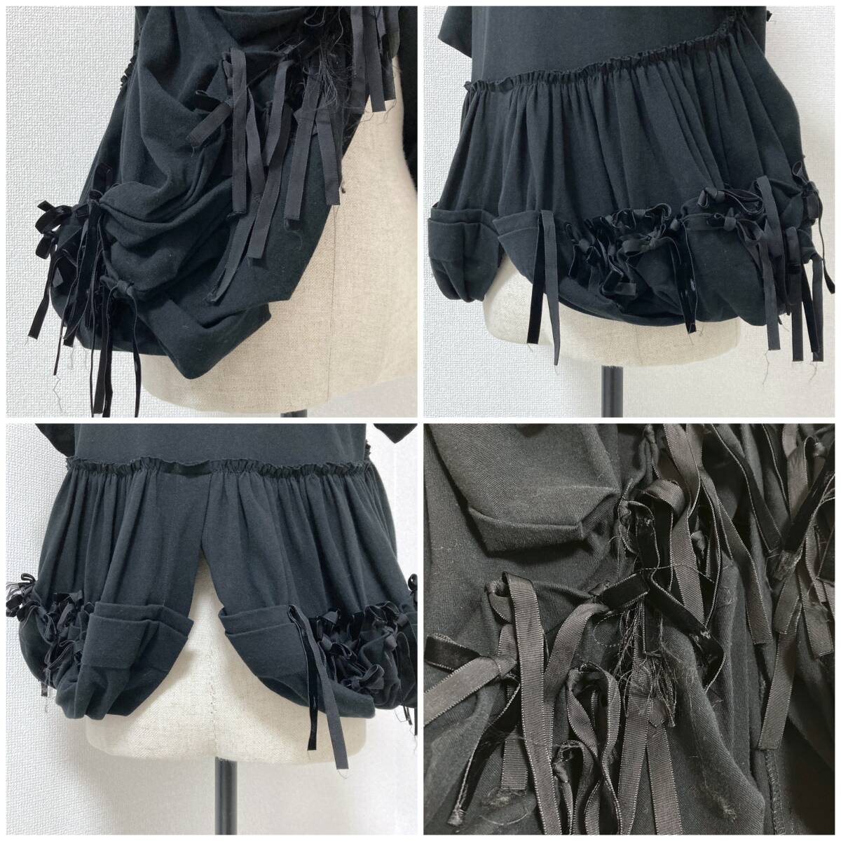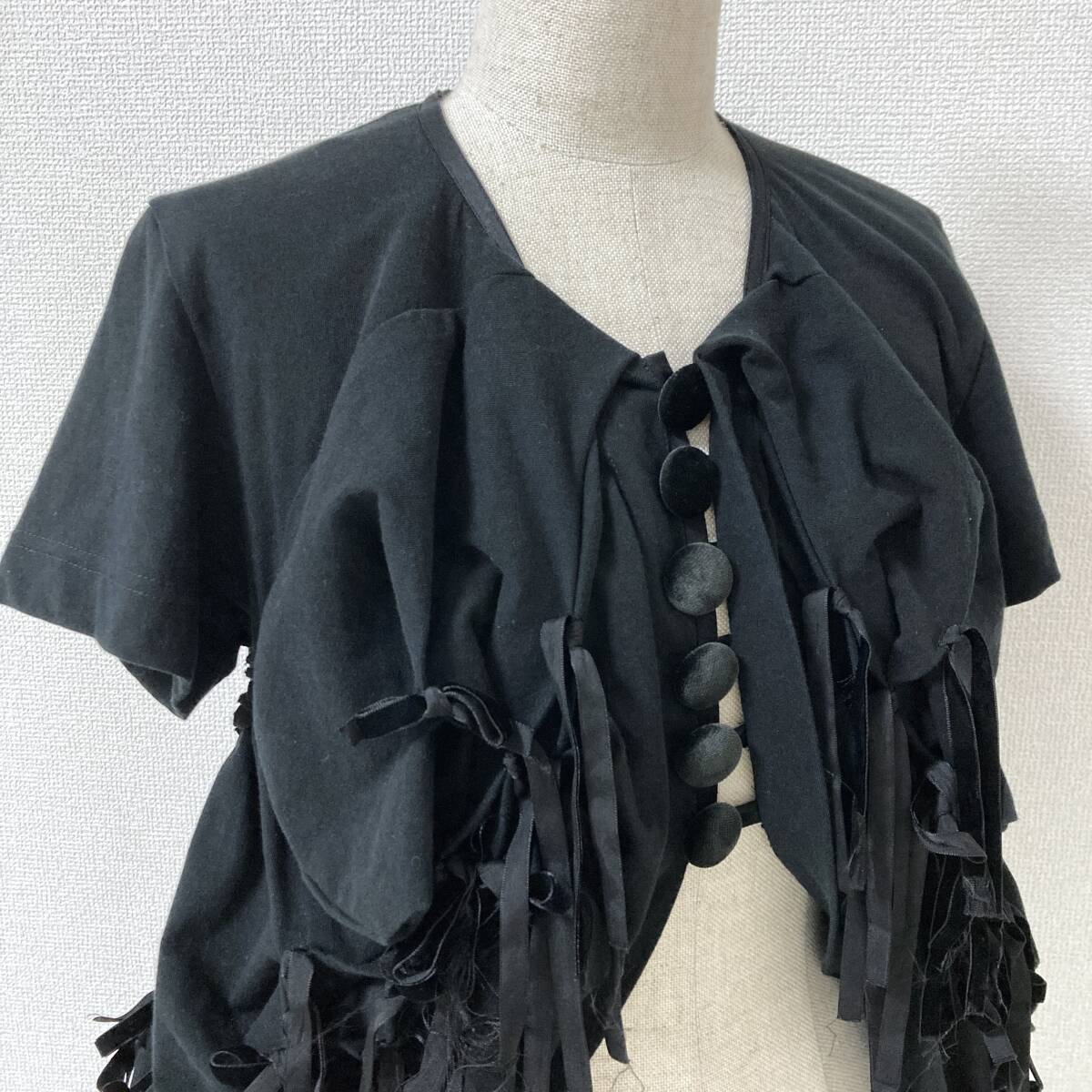 AD2009 tao COMME des GARCONS リボン 装飾 半袖 変形 バルーン カーディガン ボレロ 黒 Mサイズ タオコムデギャルソン archive 4110257