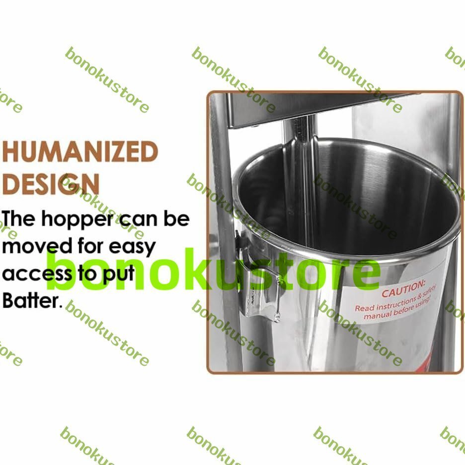 説明 容量: 5L ファンネル径:135mm~ ファンネル高さ:220mmから フライヤー容量:6L 電力: 2500W サイズ:44*39*100cm/17.3*15.3*39.3インチ 関数 1. ステンレス製のボディ。ステンレス製のボディは豪華でエレガントな外観を持ち、食品プロセスを清潔で健康的に保ちます。 2. 5つのフォーム。 5つのフォームでさまざまな種類のドーナツを作ることができます。フルーツジャムを詰めることができます。 3.人間味のあるデザイン。漏斗は移動できるので、ペーストに簡単にアクセスできます。 4. 強力な新しいギアボックス。新動力伝達、押し・後進2段ギア。 パッケージは以下を含みます: 1×チュロスメーカーマシン 1×電気フライヤー