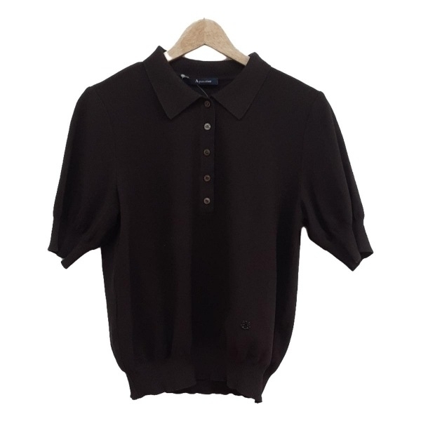 アクアスキュータム Aquascutum 半袖セーター/ニット サイズ13 L - ダークブラウン レディース レギュラーカラー 美品 トップス