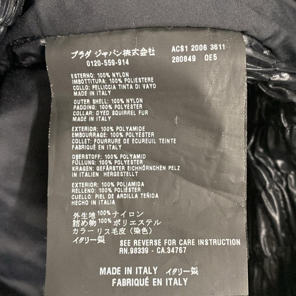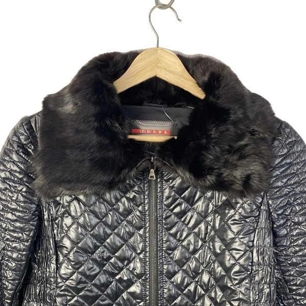 プラダスポーツ PRADA SPORT ブルゾン - 黒 レディース 長袖/キルティング/ジップアップ/冬/ファー(カラーリス) ジャケット