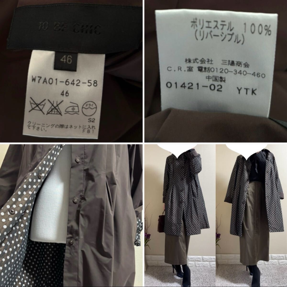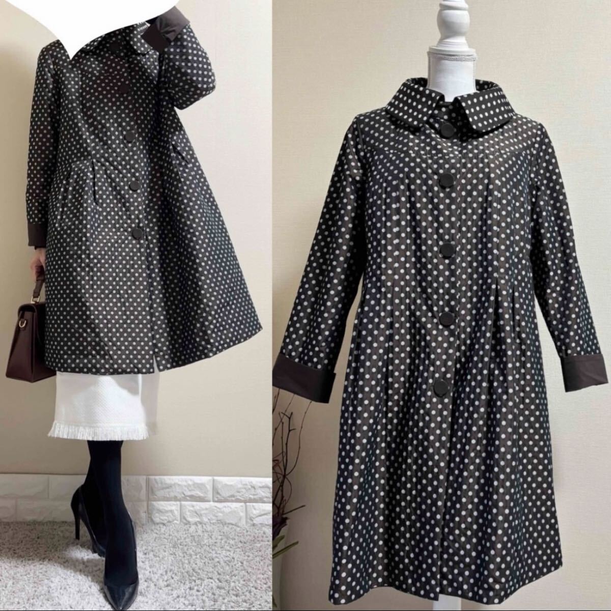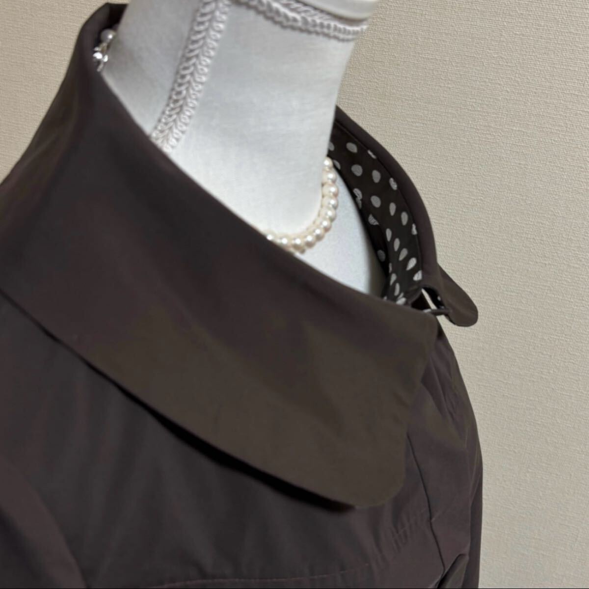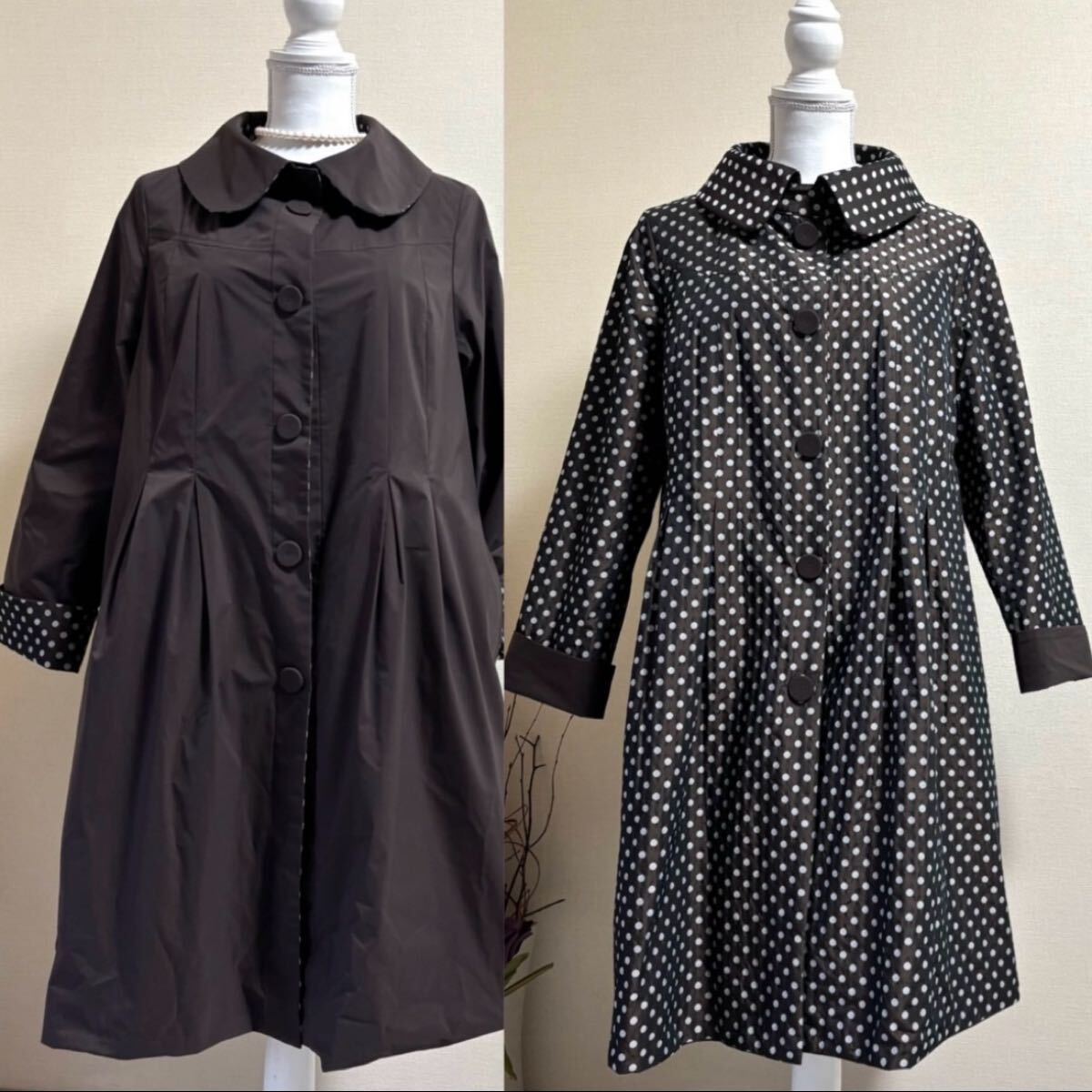 ドットジャガードコート×ブラウン無地タフタコートの両方が楽しめるお得なリバーシブルコート トレンチコート スプリングコートです