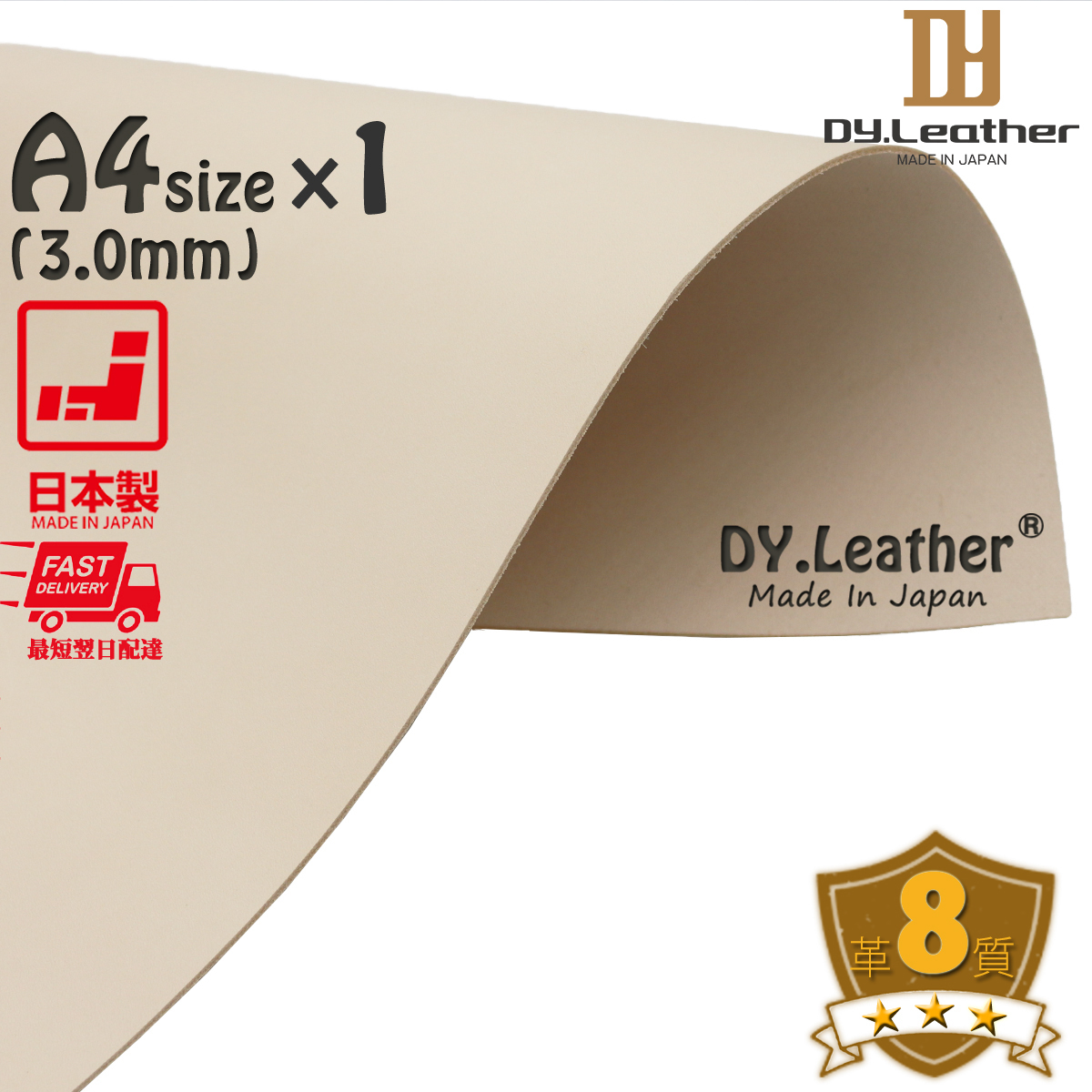 | 品質詳細 | 革質:[低 1-2-3-4-5-6-7-(8)-9-10 高] ツヤ:[無 (1)-2-3-4-5 有] 厚み:[3.0mm] |