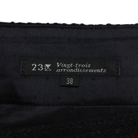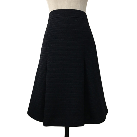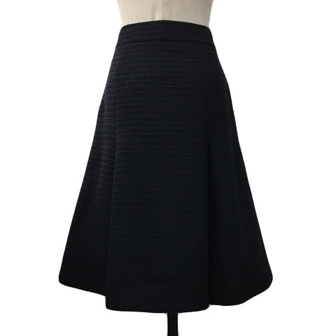 23区 オンワード樫山 スカート フレア ツイード ひざ丈 38 黒 紺 ブラック ネイビー レディース