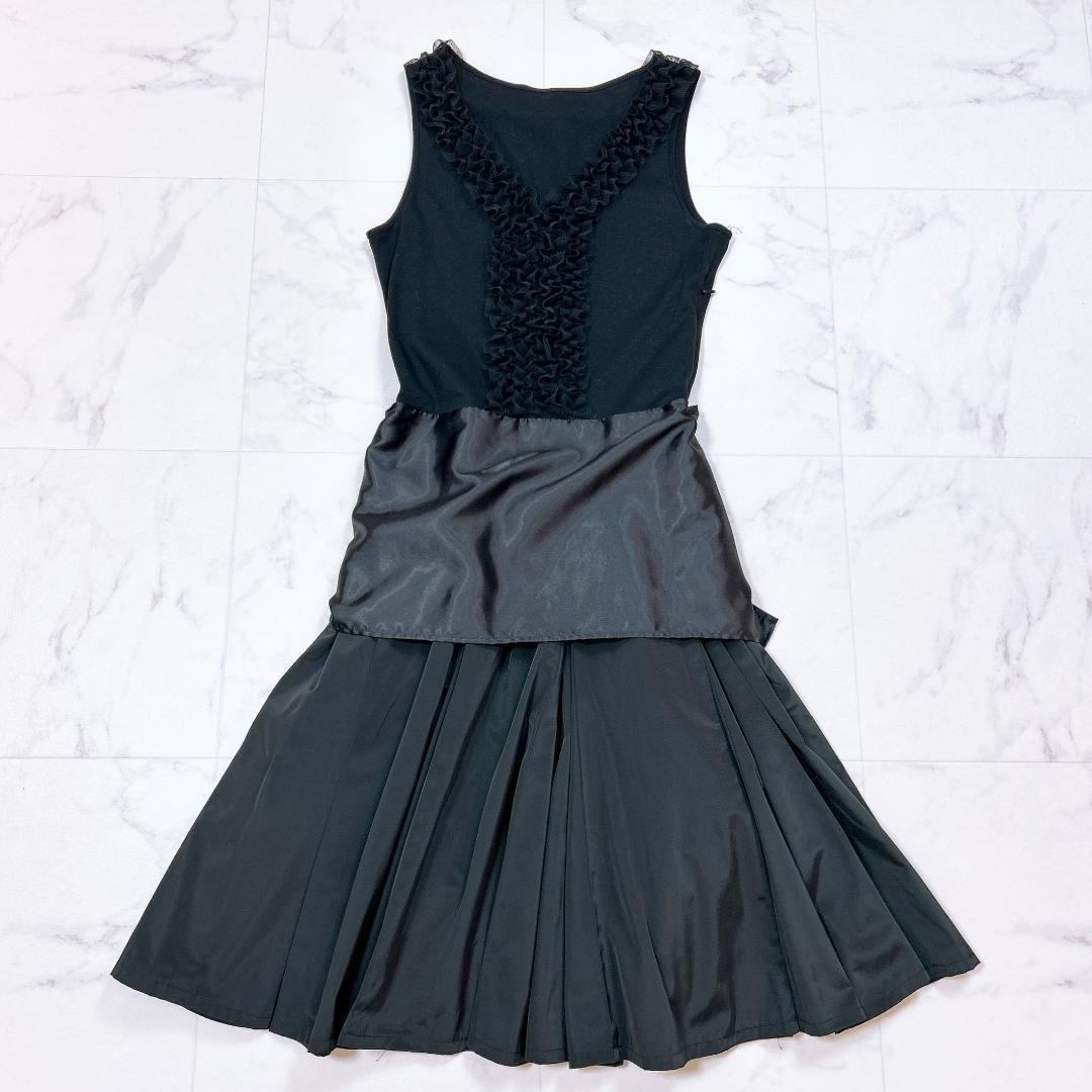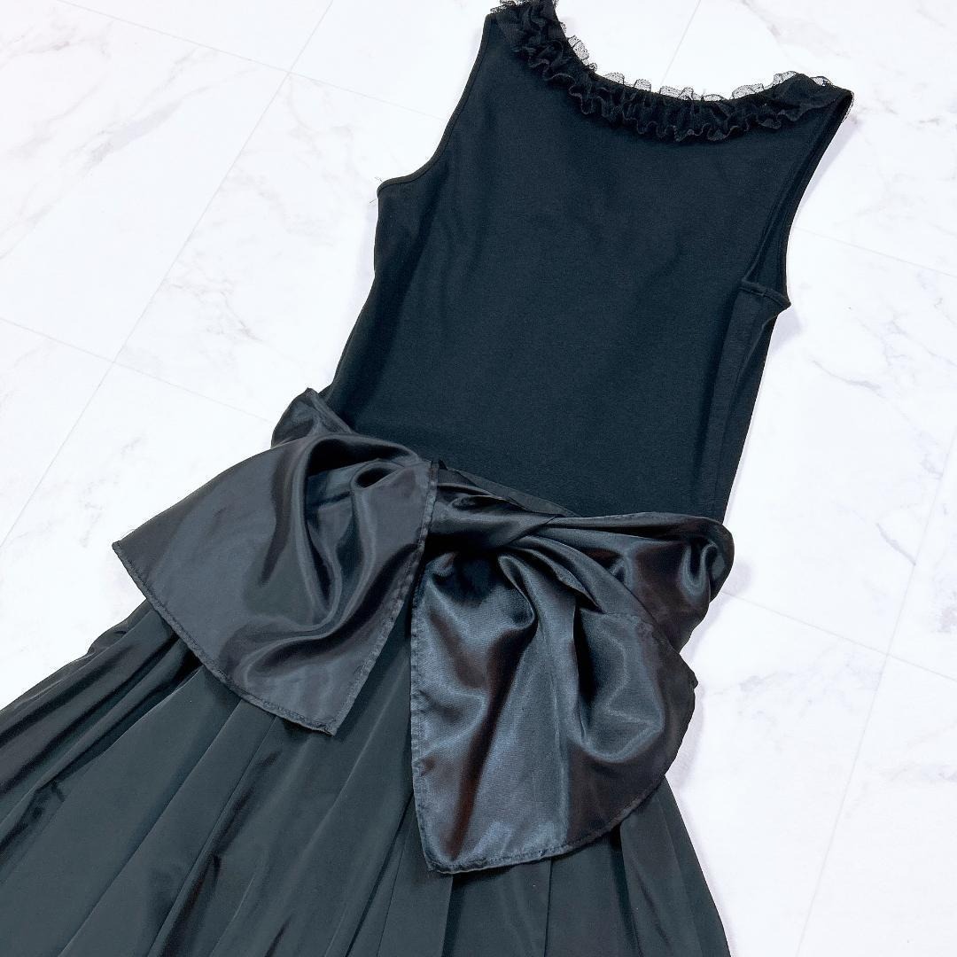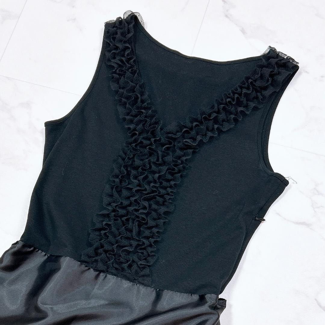 ノースリーブワンピース ドッキング 胸元フリル リボン